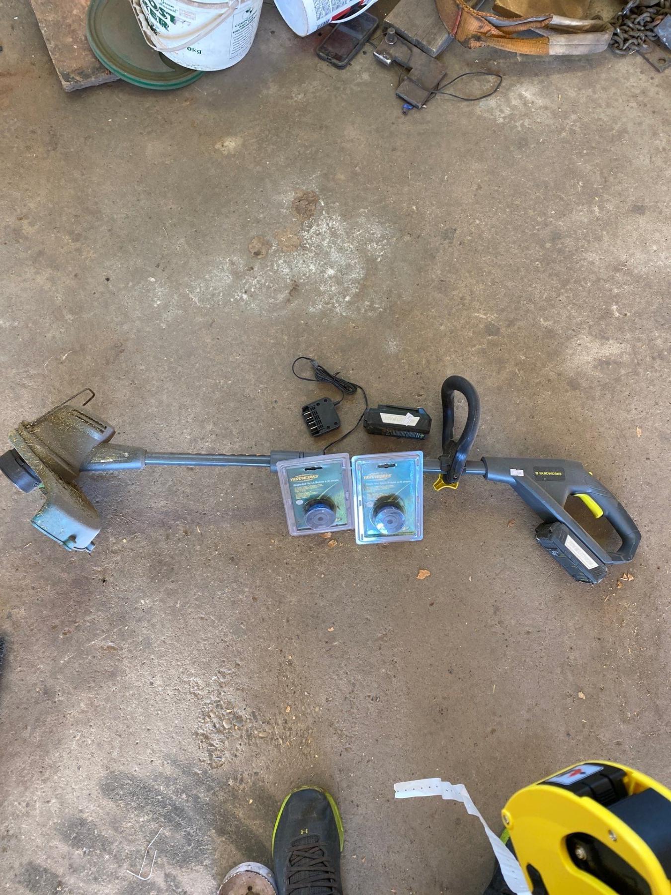 Yardwork 20 V lithium battery two batteries weedeater with charger. Everything works great.
