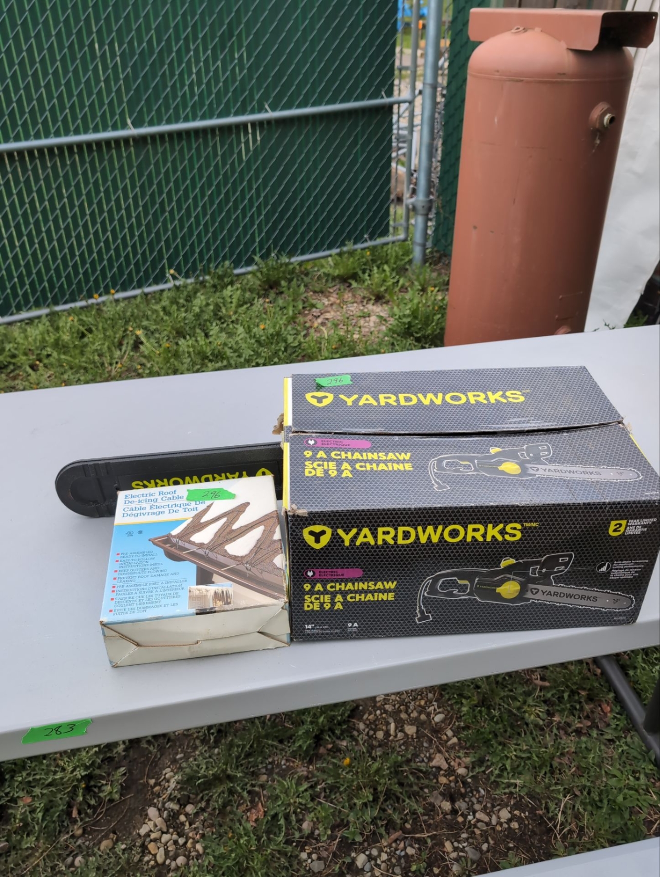 Yardworks electric chainsaw (in box) and electric roof de-icing cable