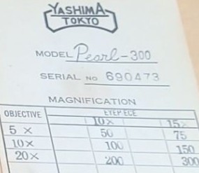Yashima Tokyo Vintage Microscope Model Pearl-300