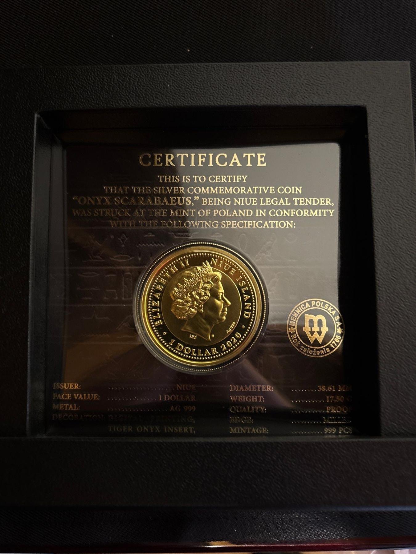 ONYX SCARABAEUS Ancient Symbol silver coin 1$ Niue 2020