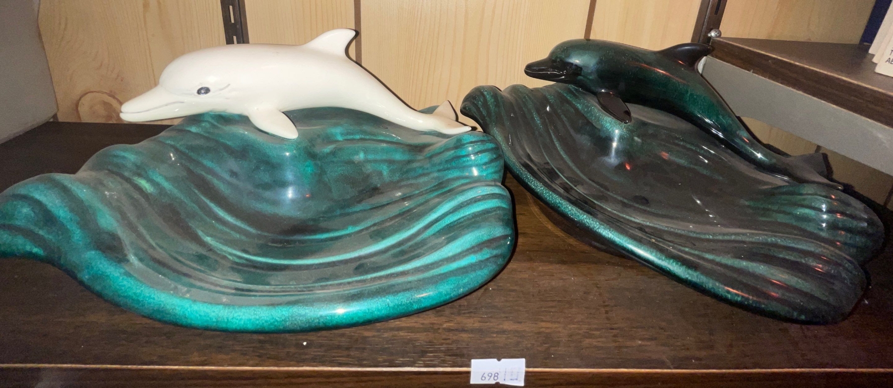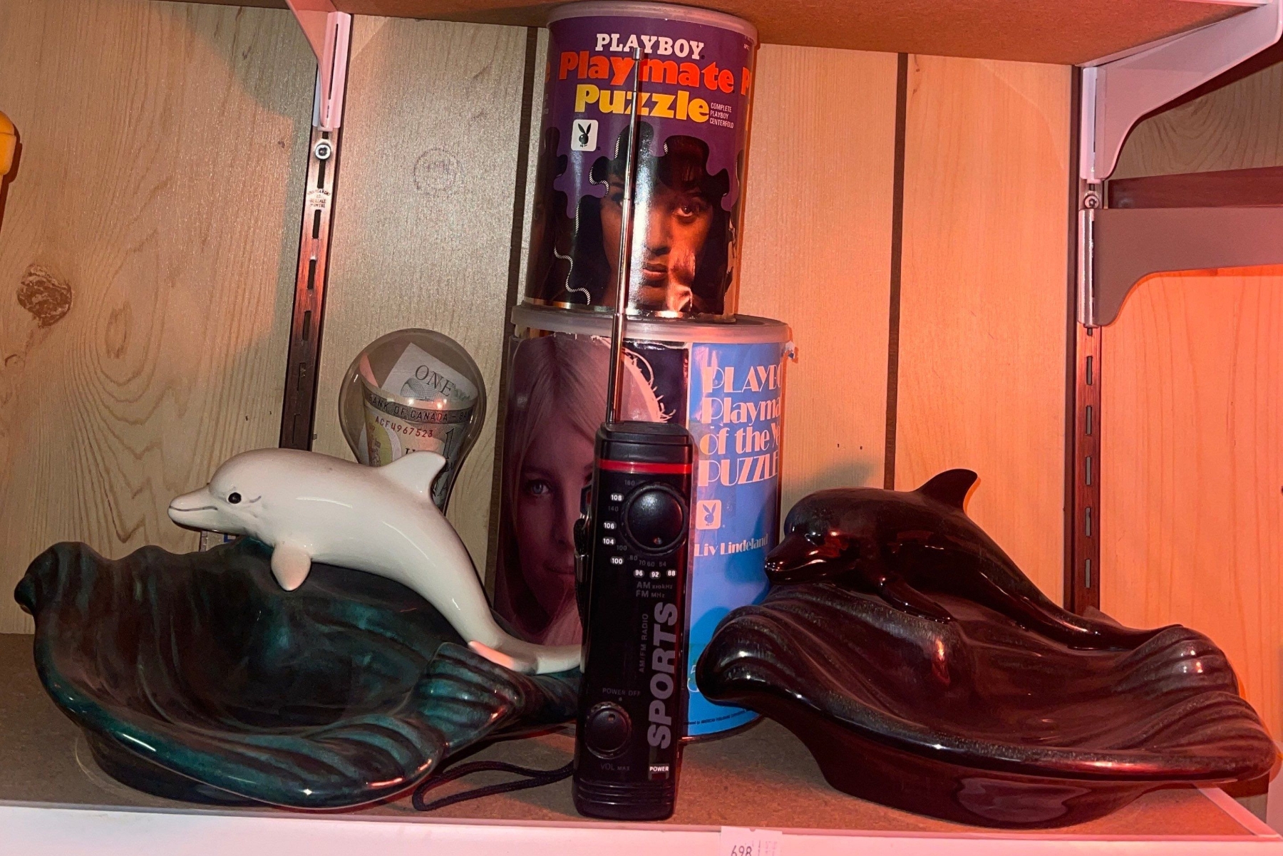 Ying & Yang Ceramic Dolphin Trinket Holders w/ Vintage Playboy Games