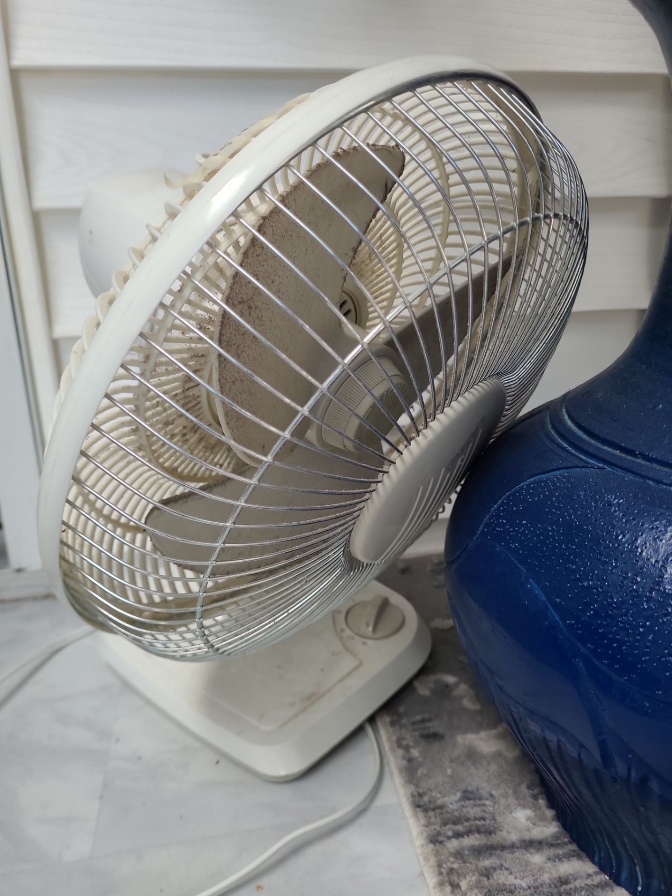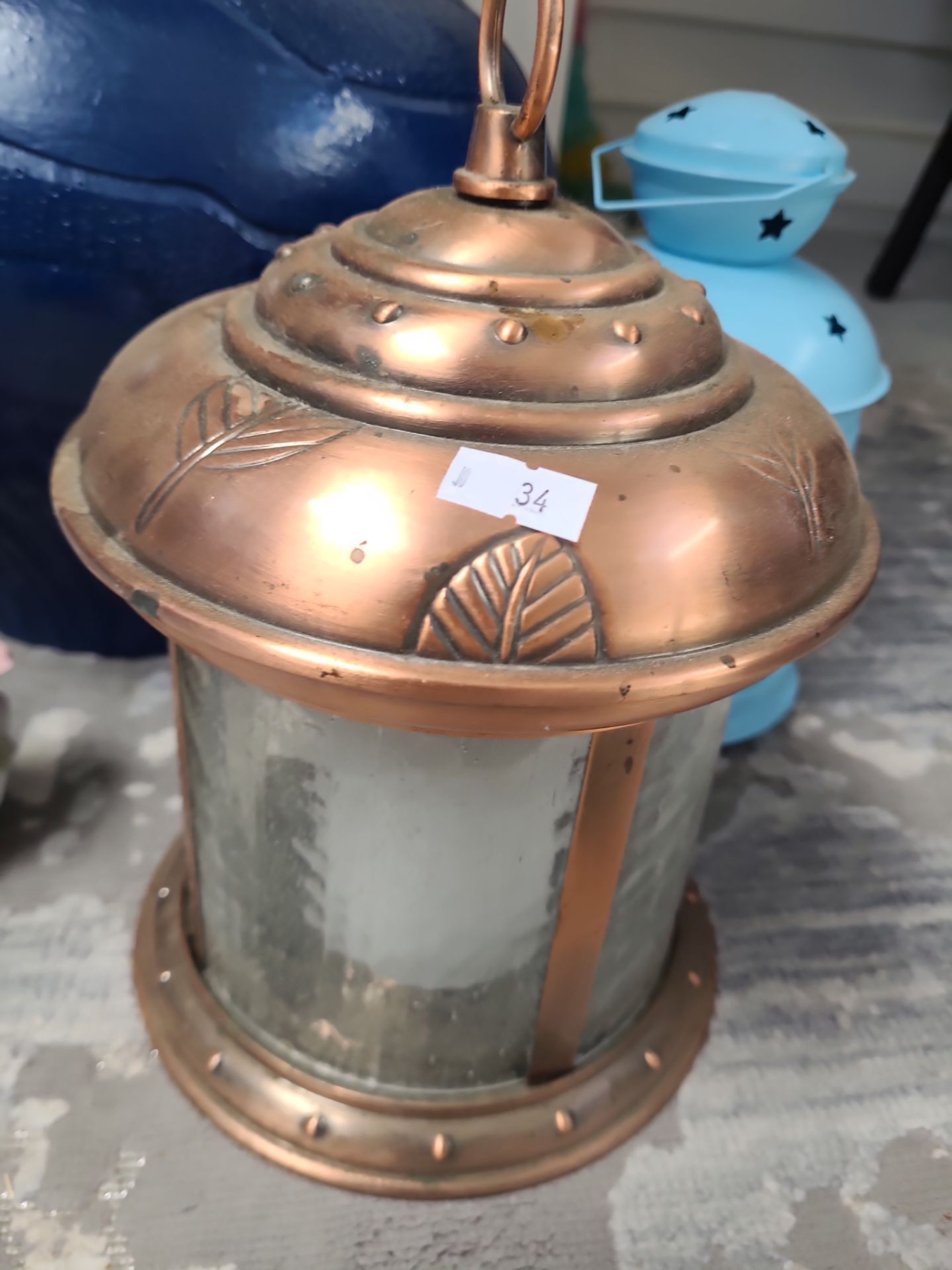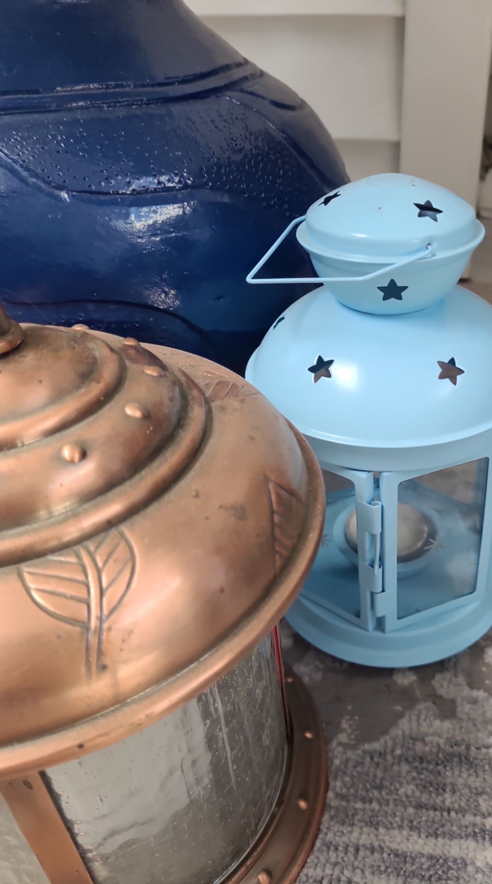 Yorkie Clock 10.5 X 23, Fan, Lanterns, Blue Floor Vase 18 T, Artificial Flowers, Runner 37 X 119