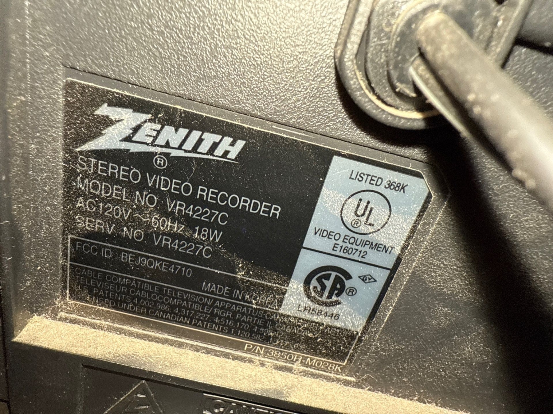 Zenith Stero Video Recorder Model No. VR4227C & Technics Compact Disc Changer Sl-P9066