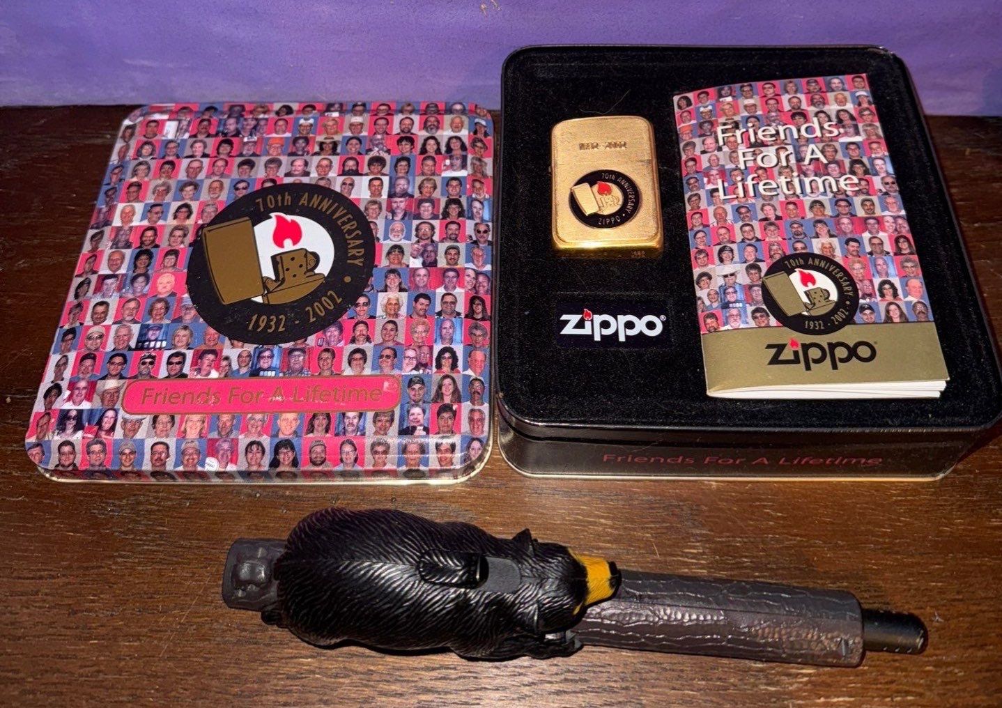 Zippo "Friends For A Lifetime" 70th Anniversary Lighter w/ Bear Novelty Lighter