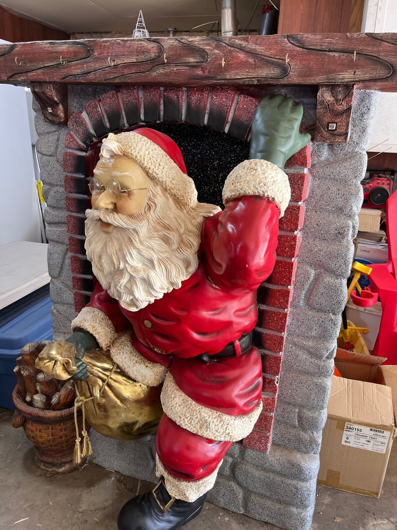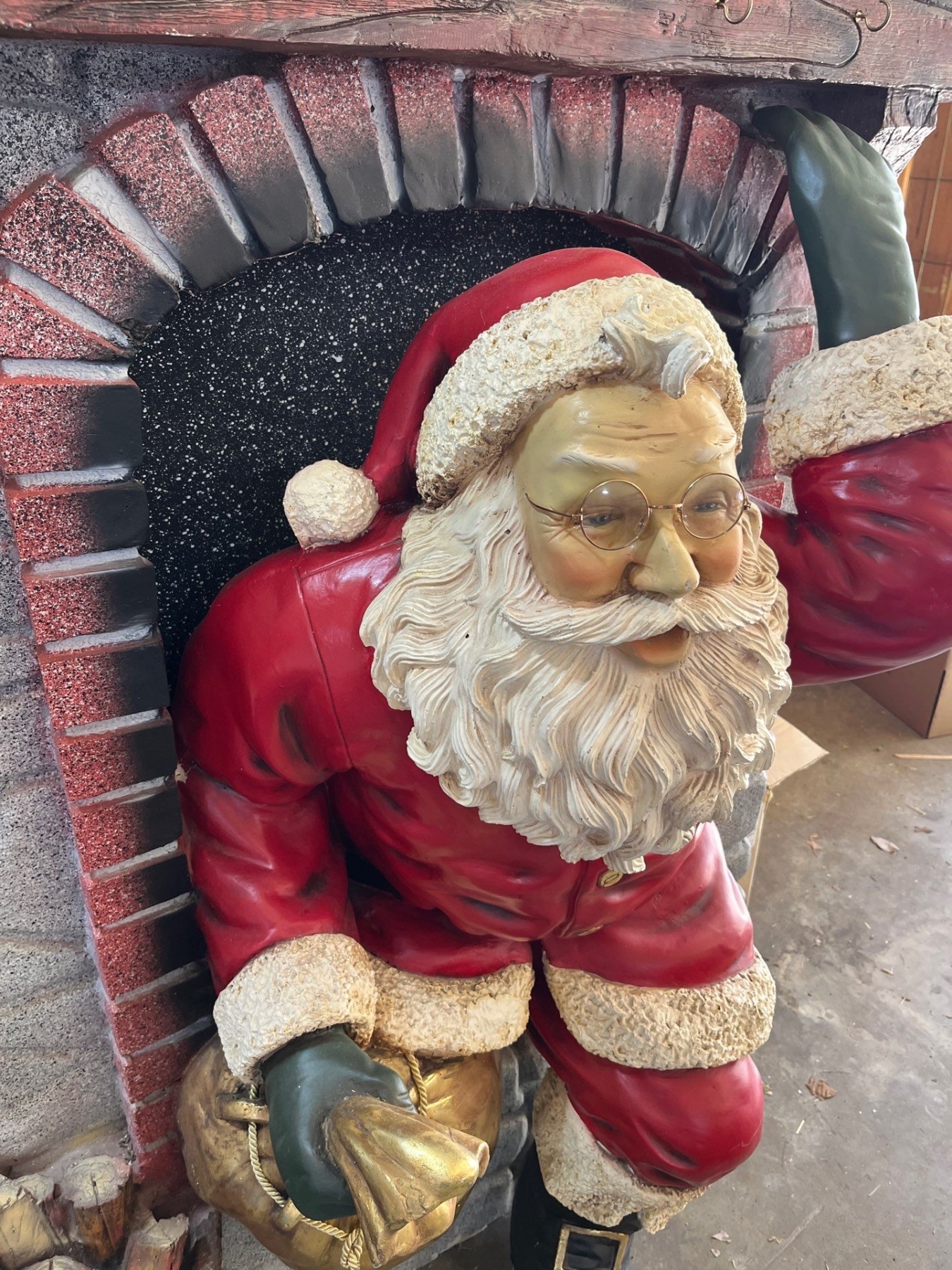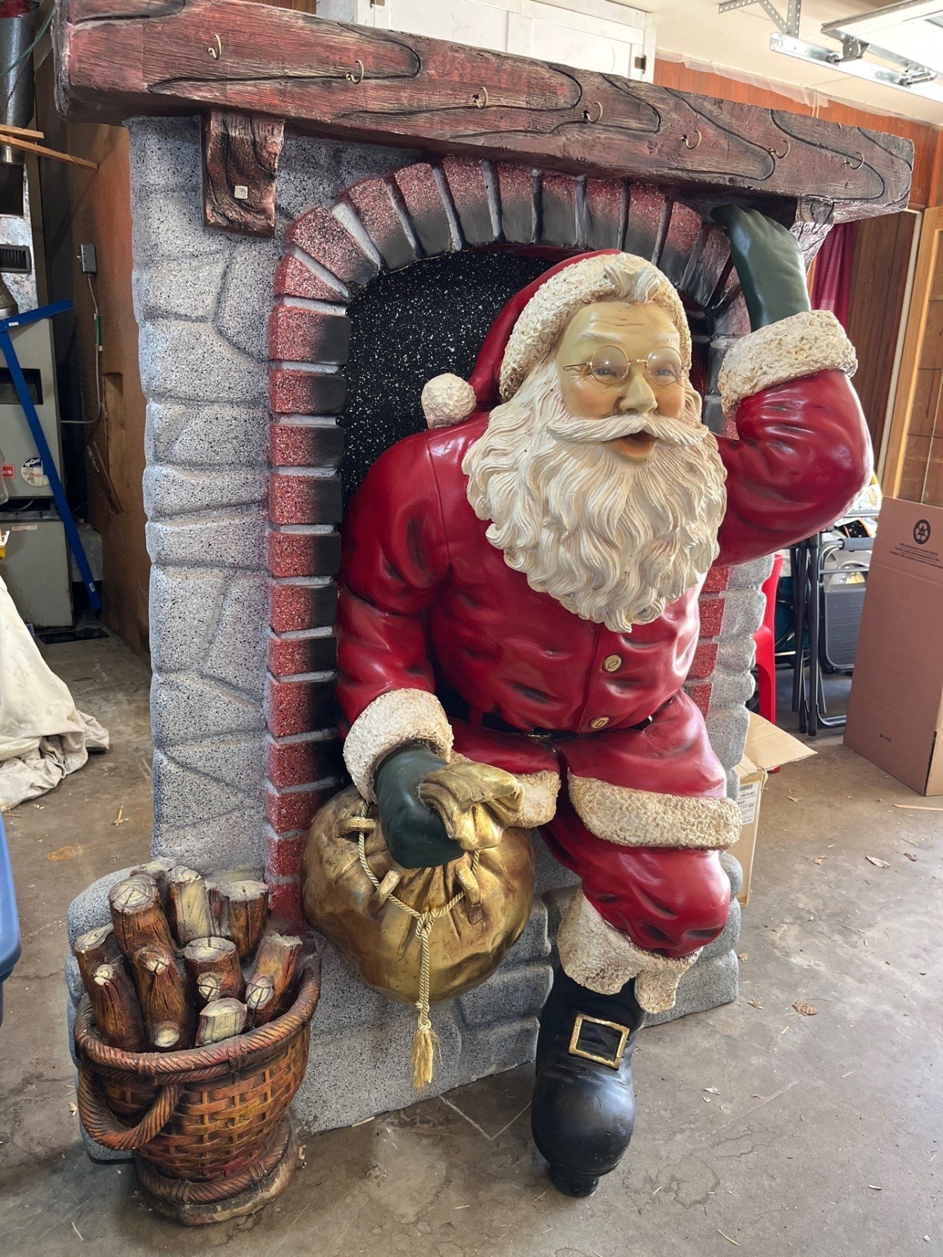 amazing Santa coming out of the fireplace sculpture 60”tall