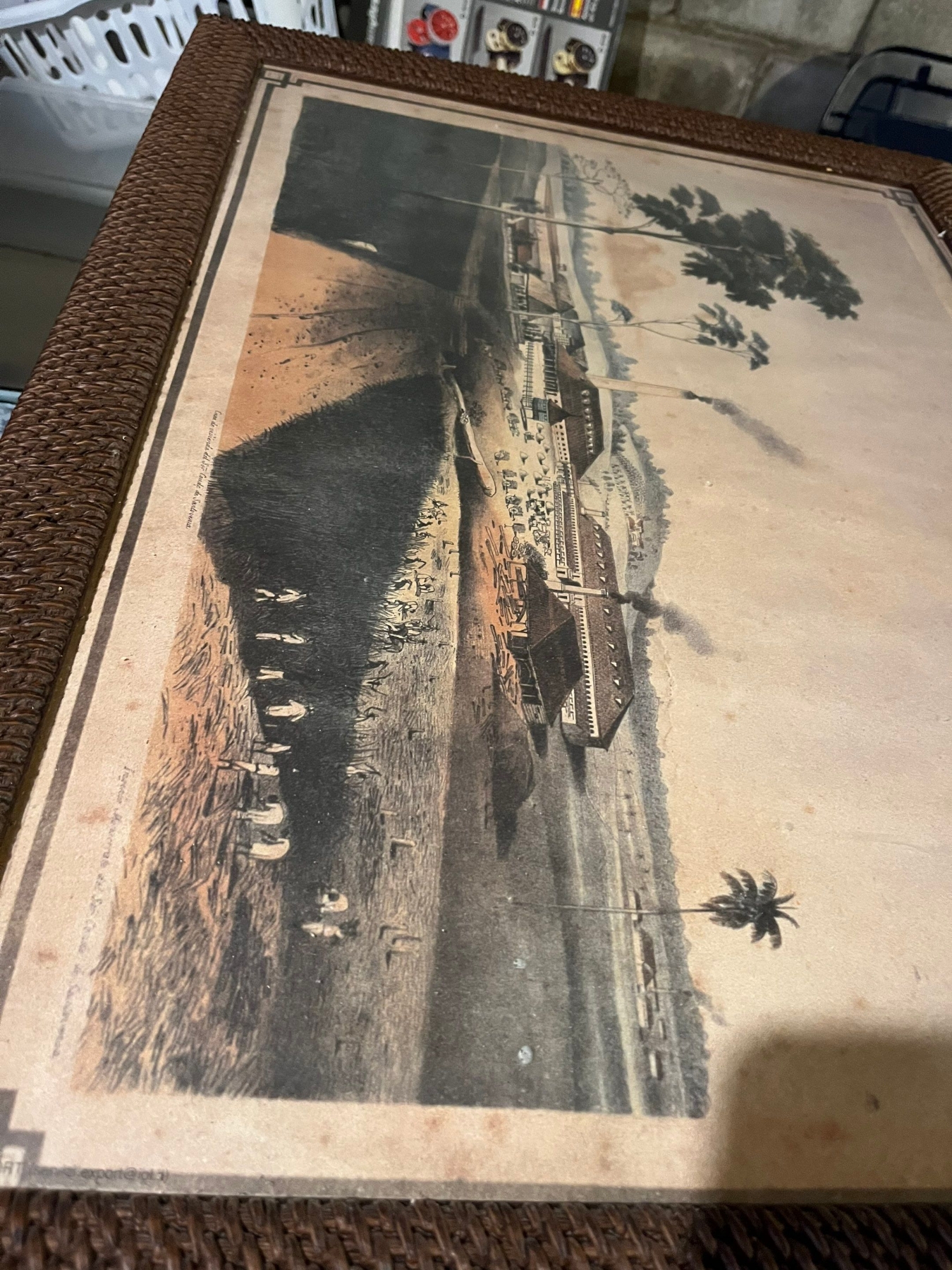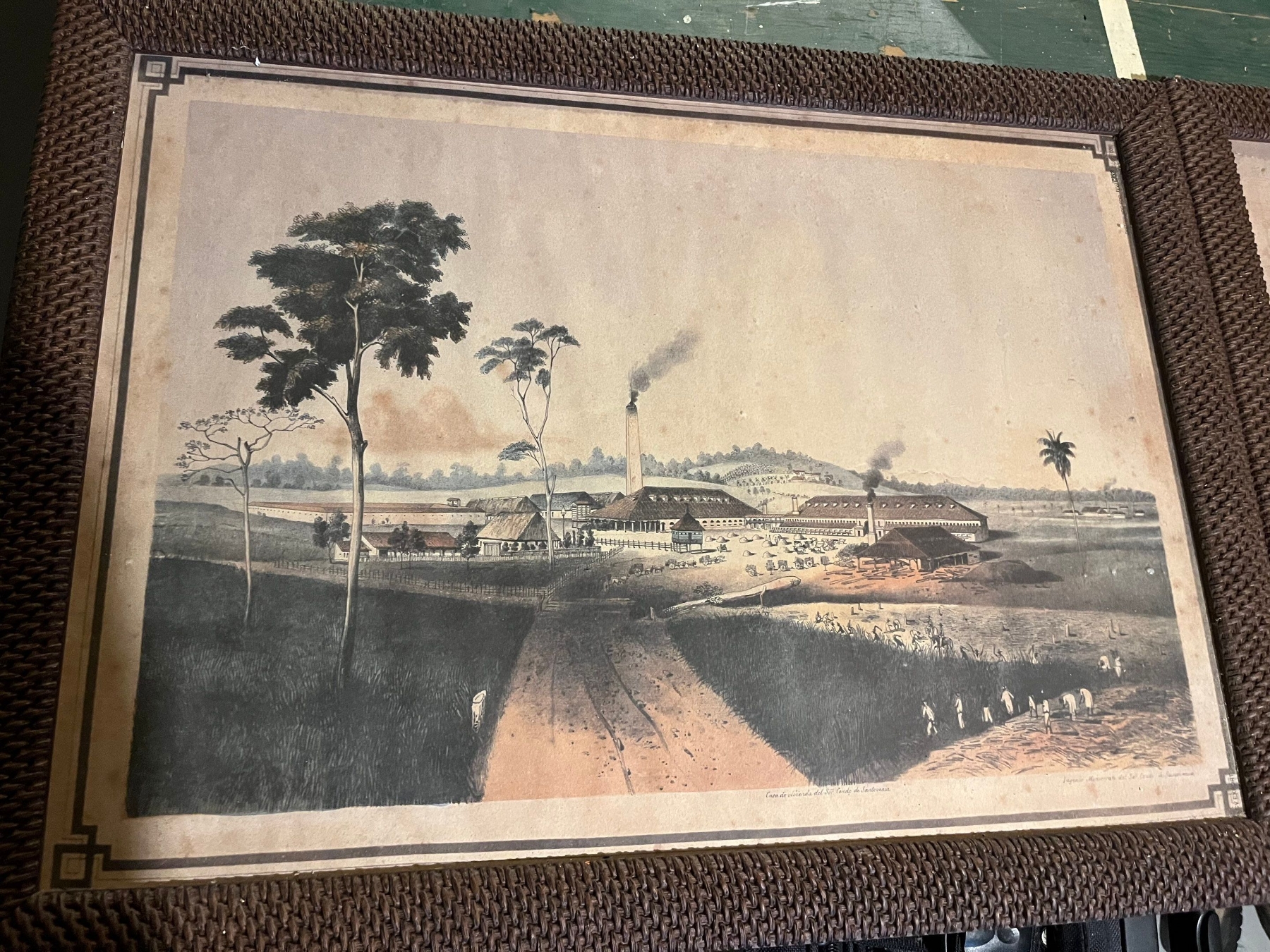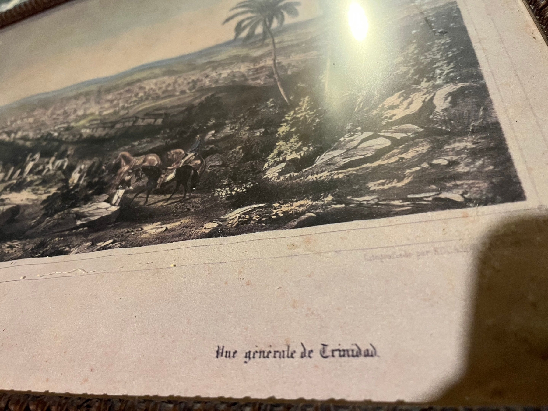 amazing vintage printed wicker framed pictures from Trinidad early 1900s 30“ x 23“