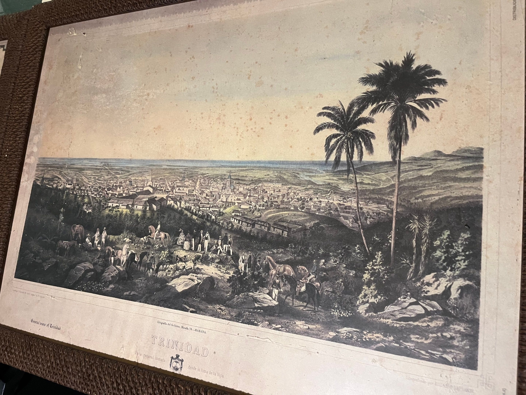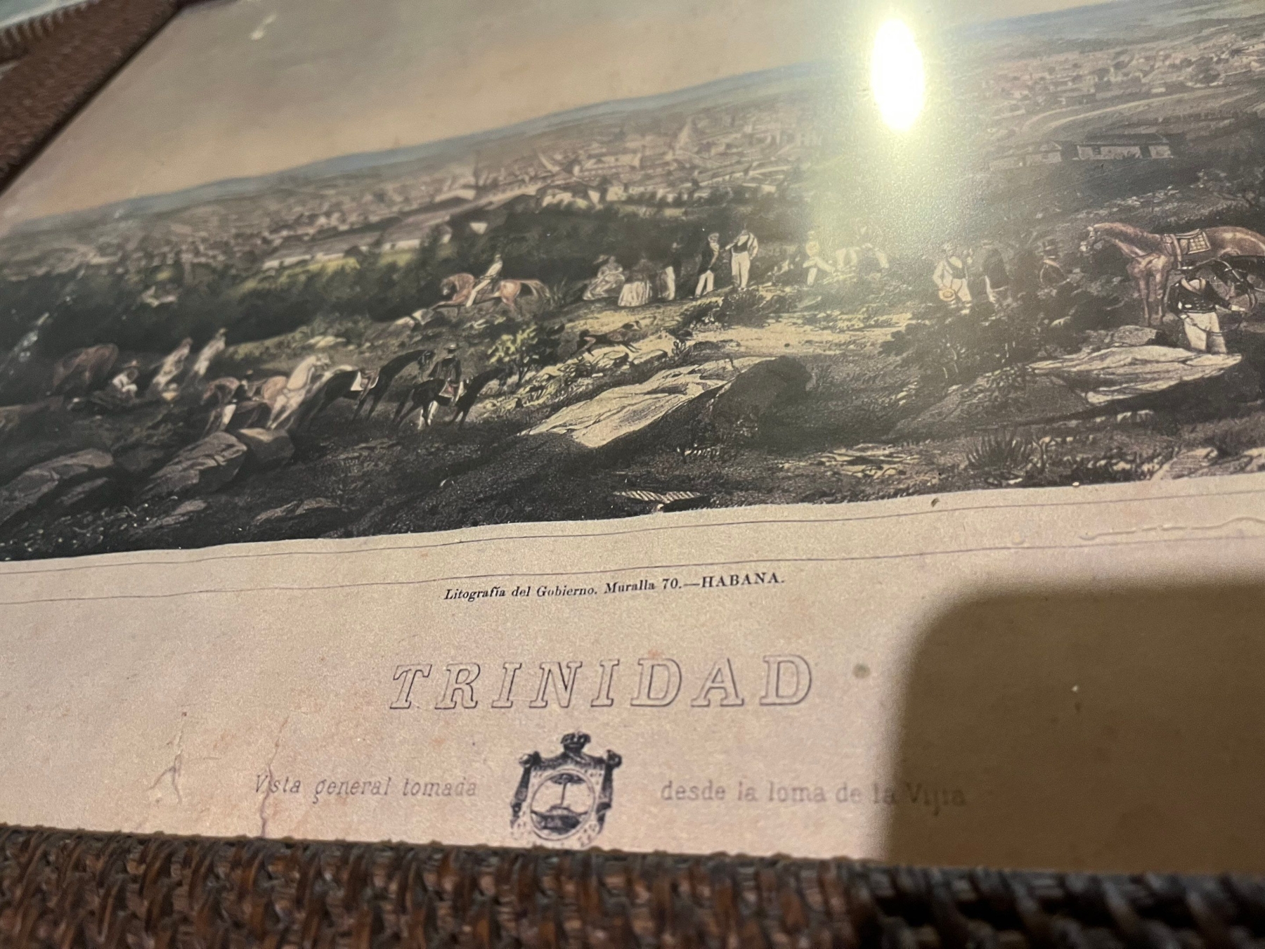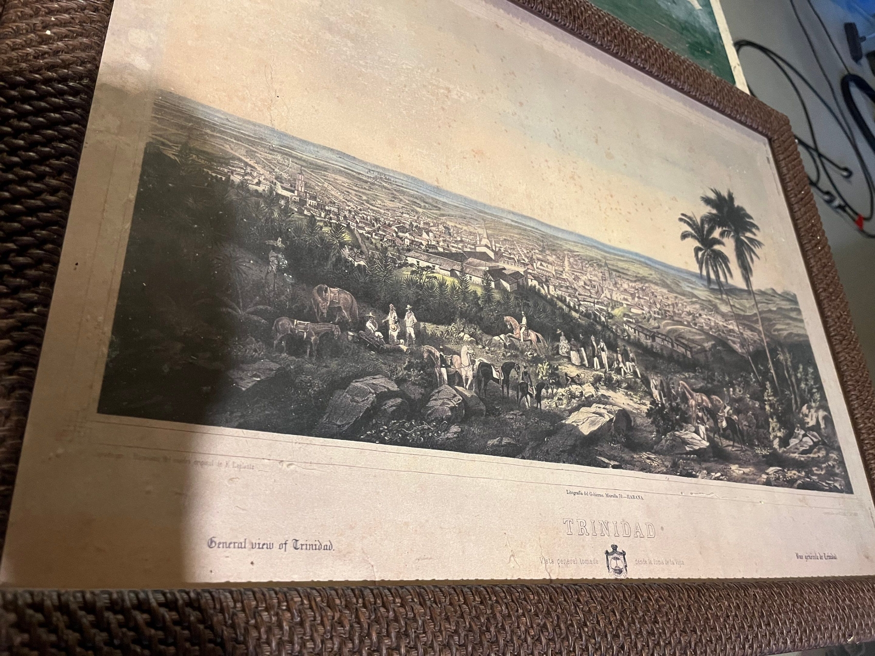 amazing vintage printed wicker framed pictures from Trinidad early 1900s 30“ x 23“