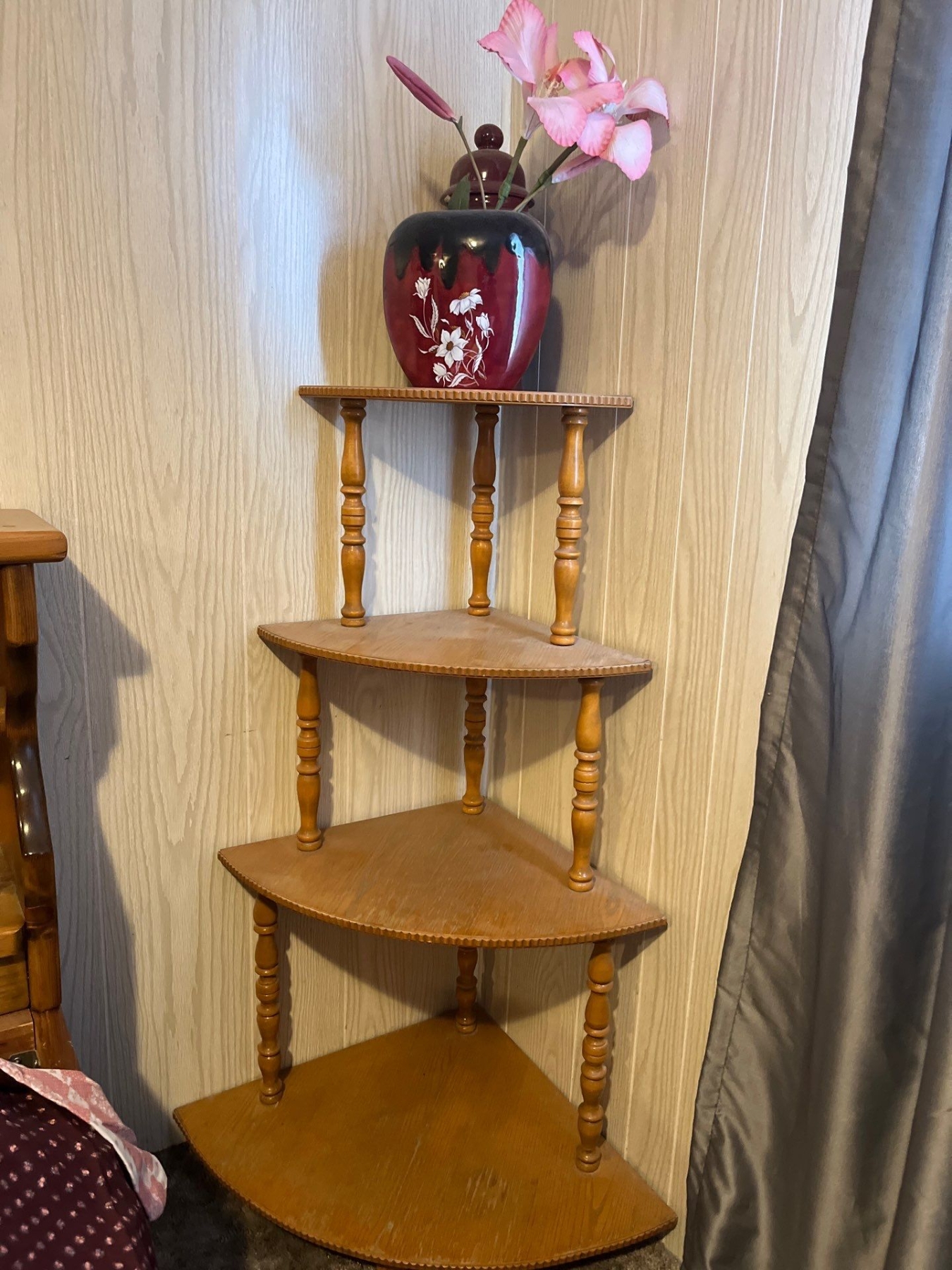 antique chair with vintage suit rack and four stage corner