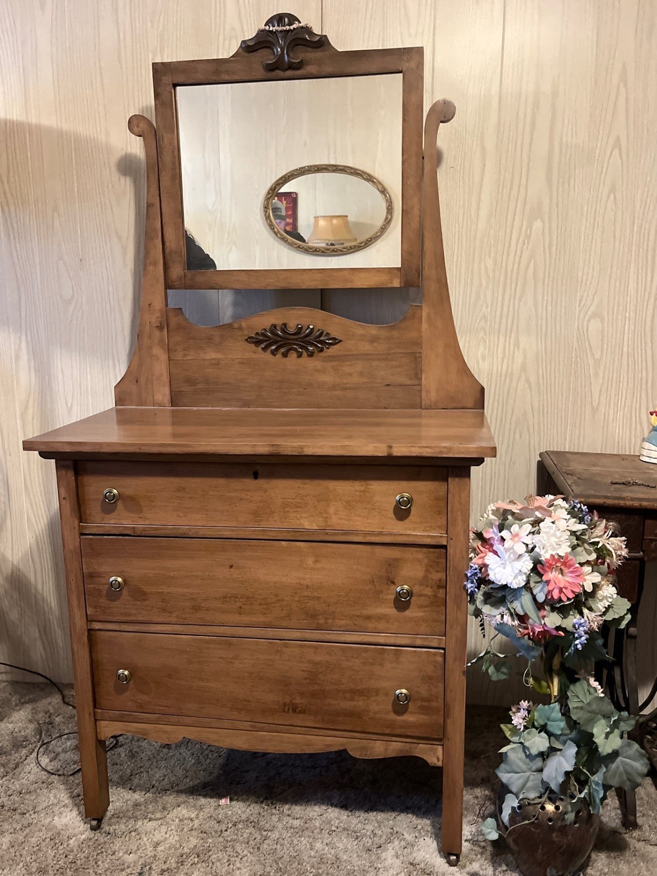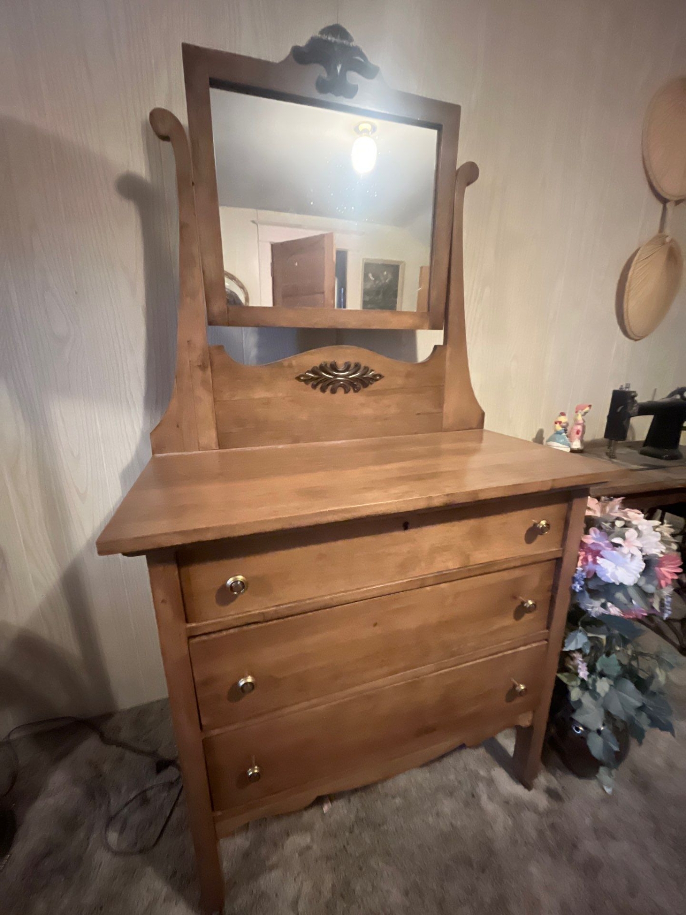 antique dresser with original mirror in amazing condition 64” height 34 length 17”width
