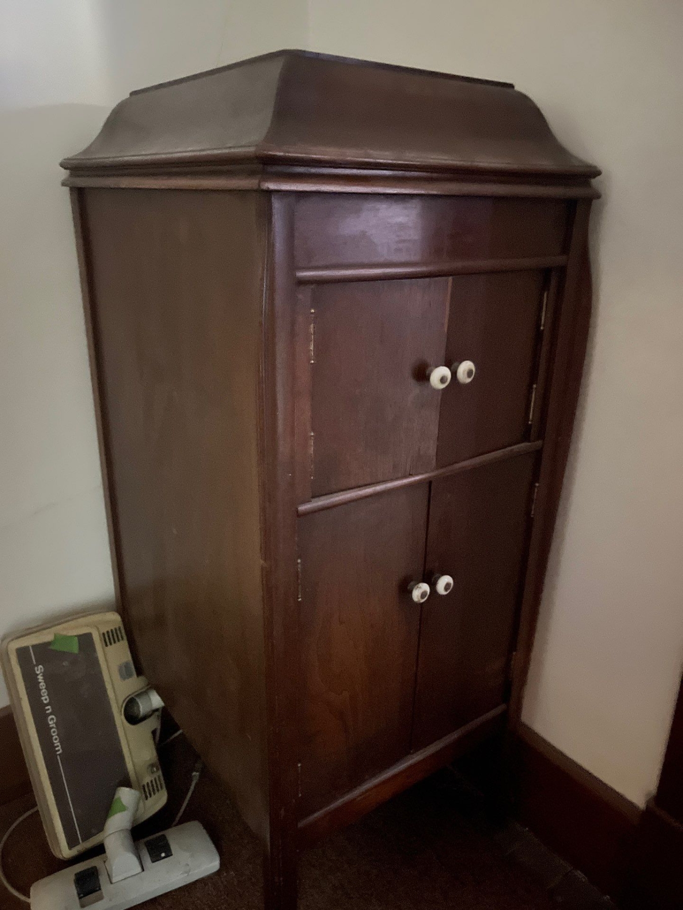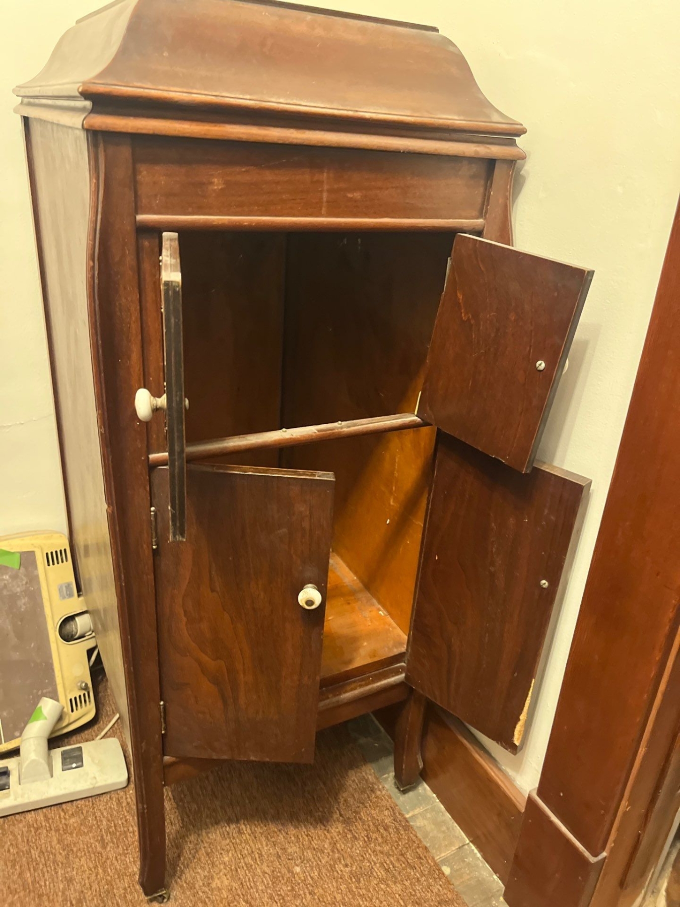 antique grandma phone cabinet great for liquor cabinet 45” height 24” depth width 17” wide