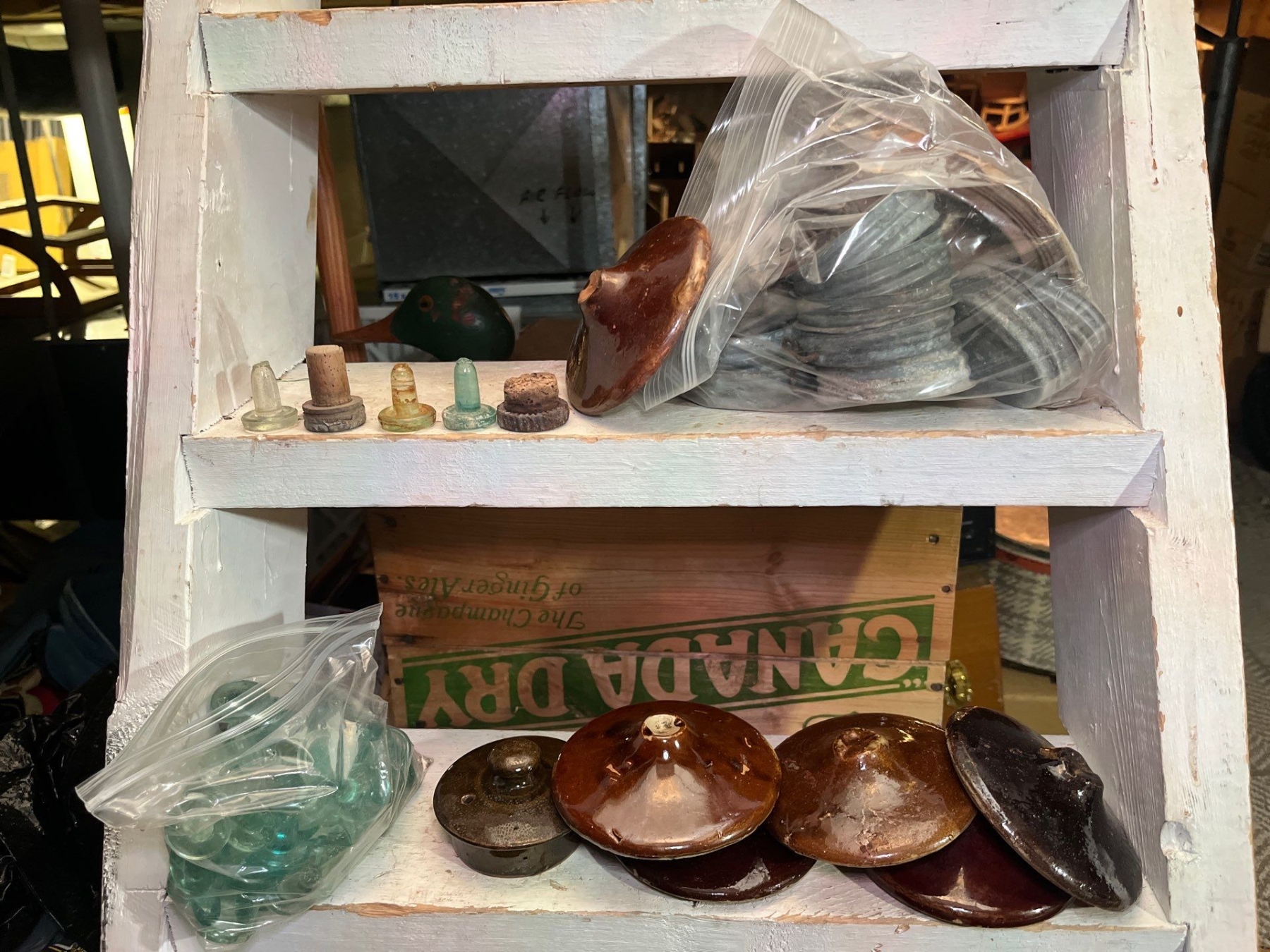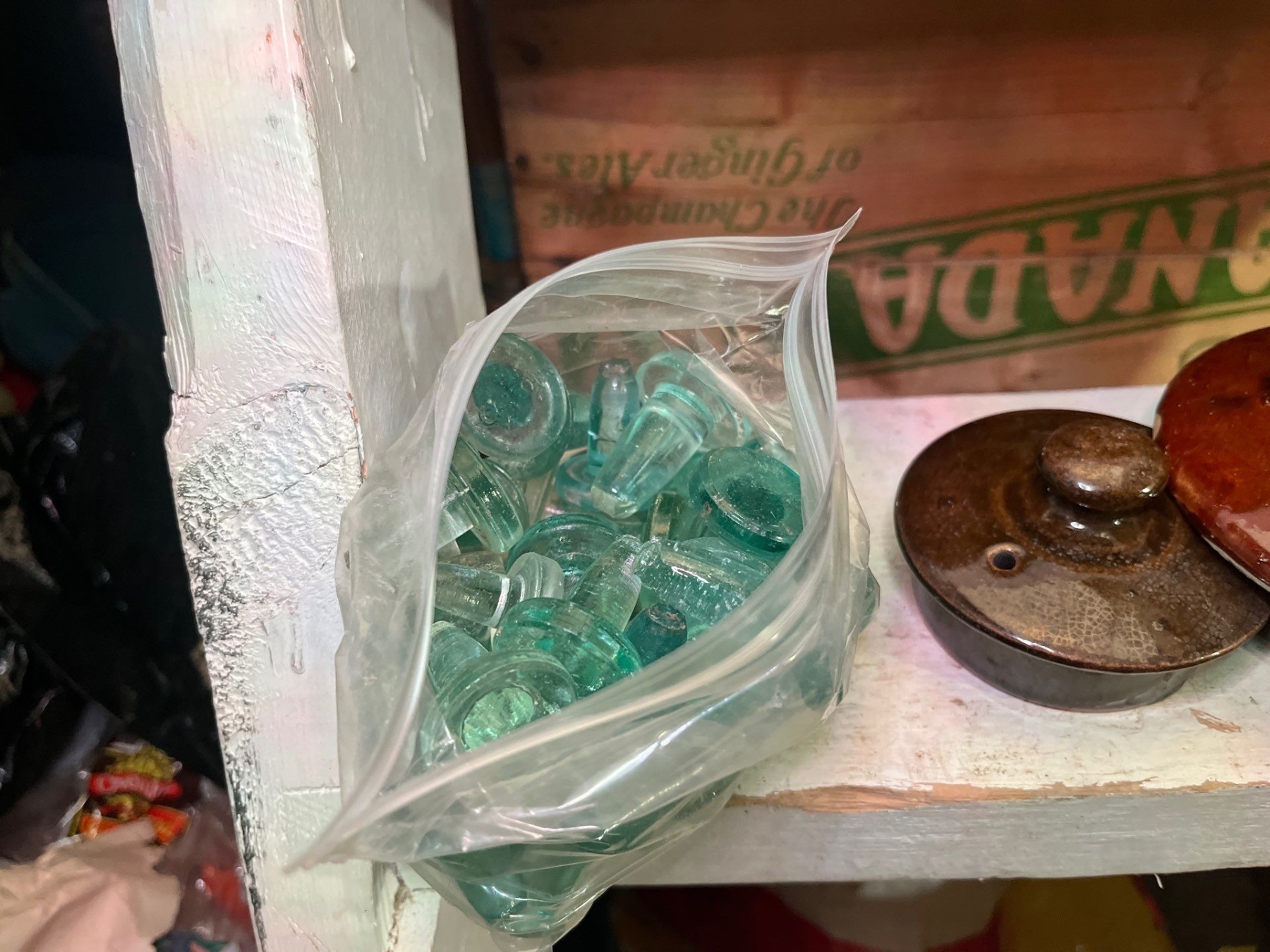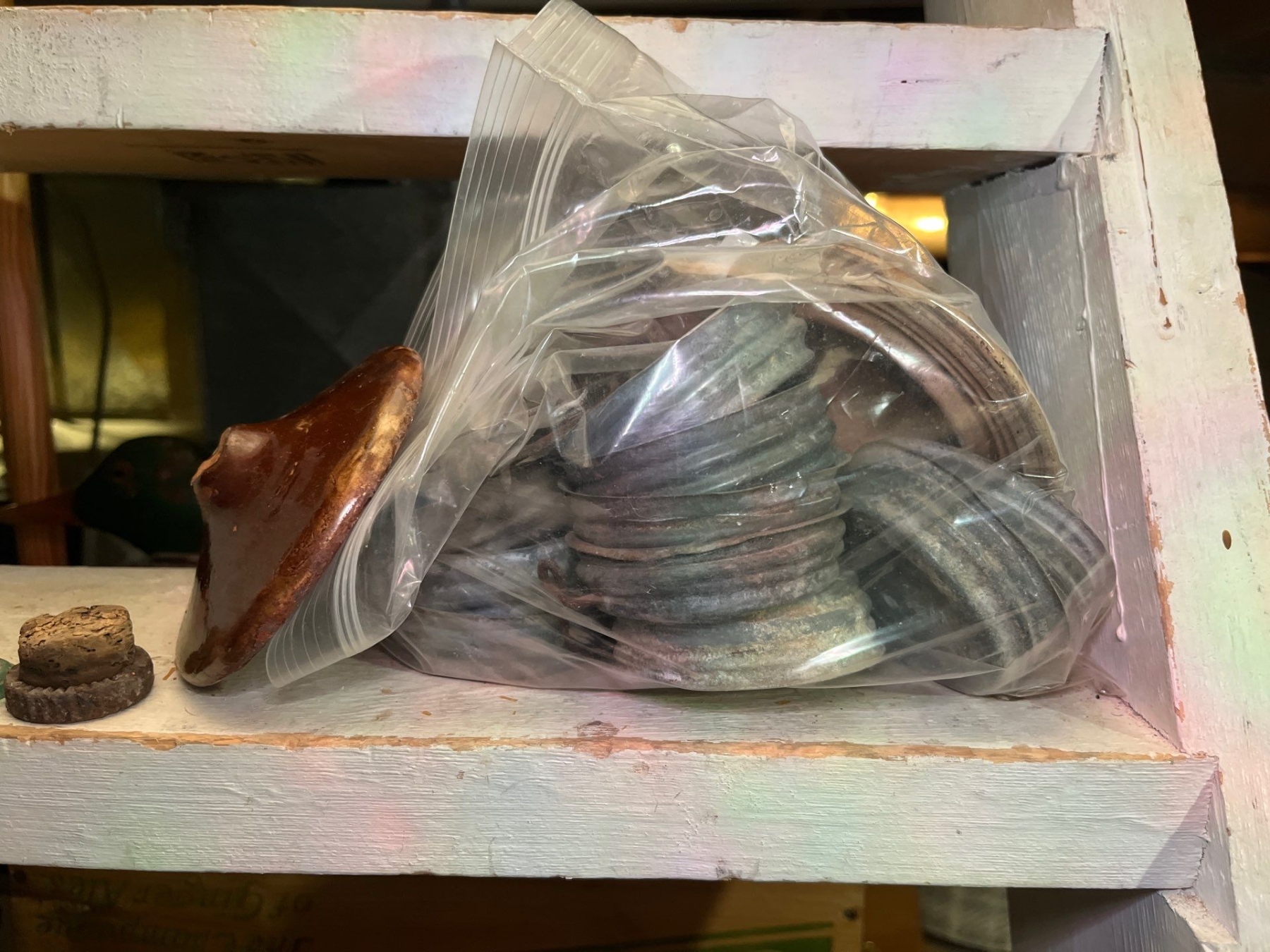 bags of glass toppers, ceramic and metal.