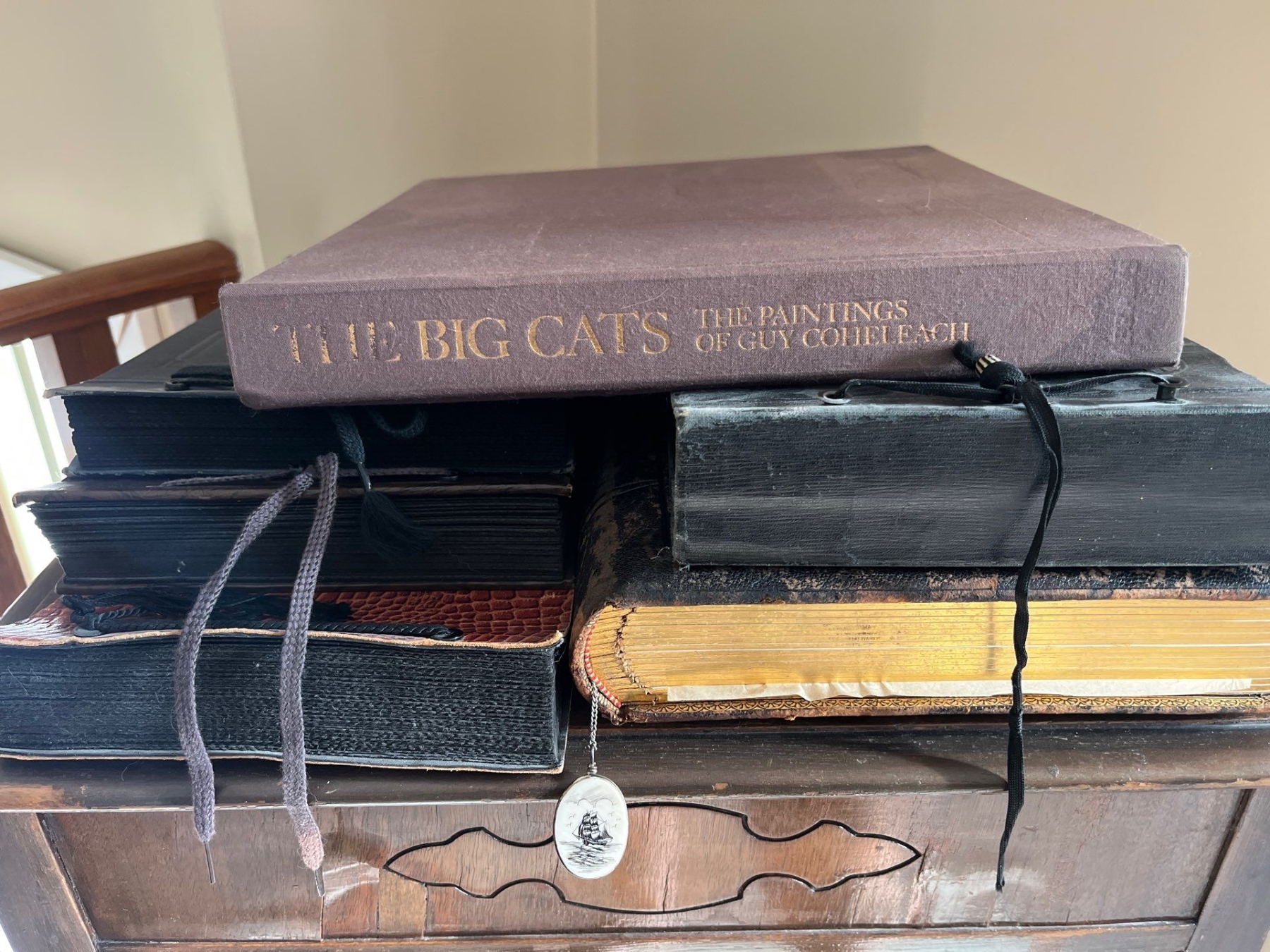 collection of antique photo albums most are all leather bound in a book by Guy COHELEACH the big cats