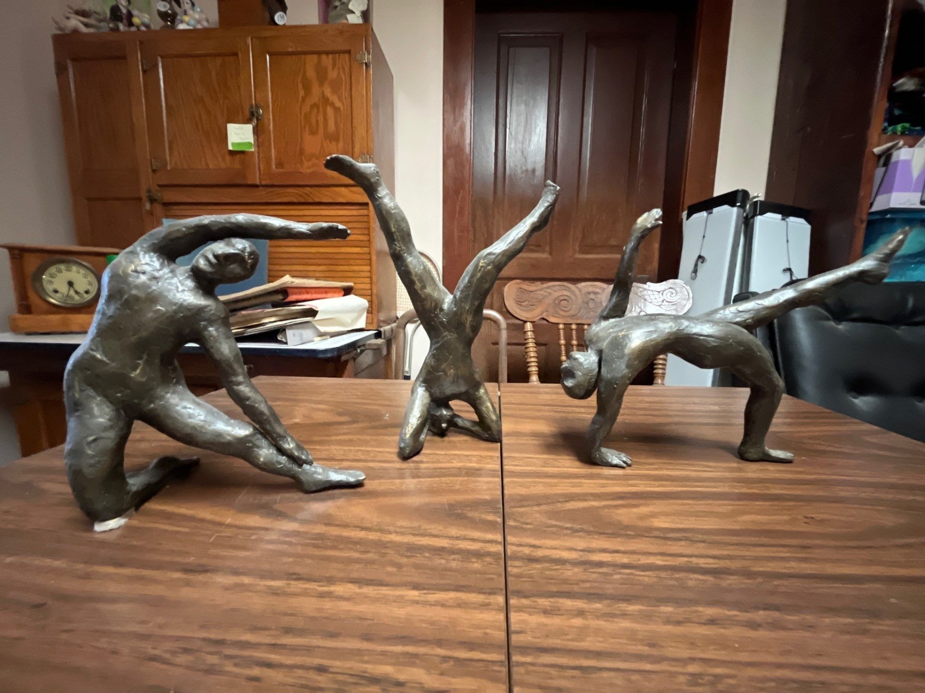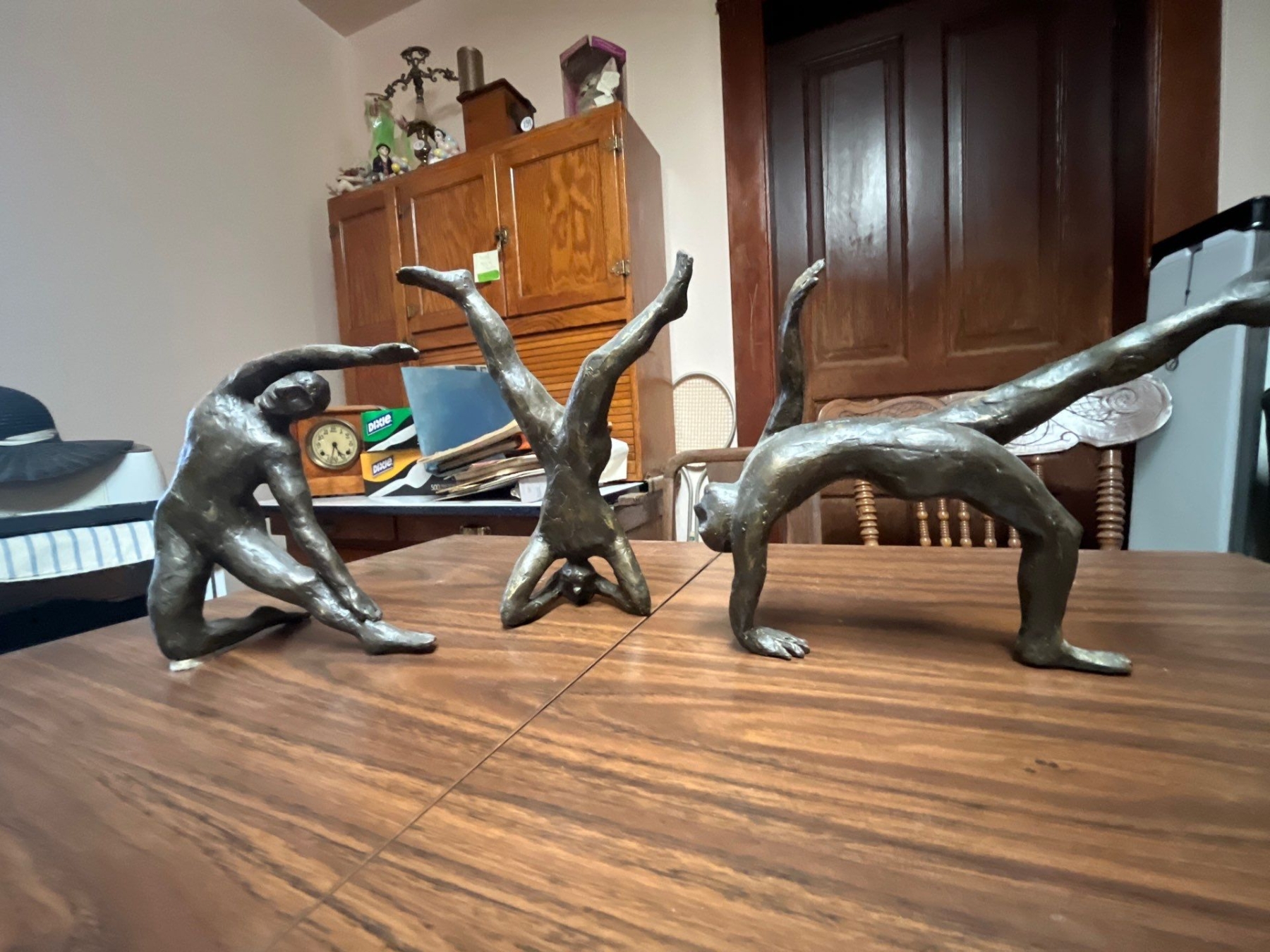 collection of bronze sculptures, handmade by local Alberta artist named petit acrobats in great condition