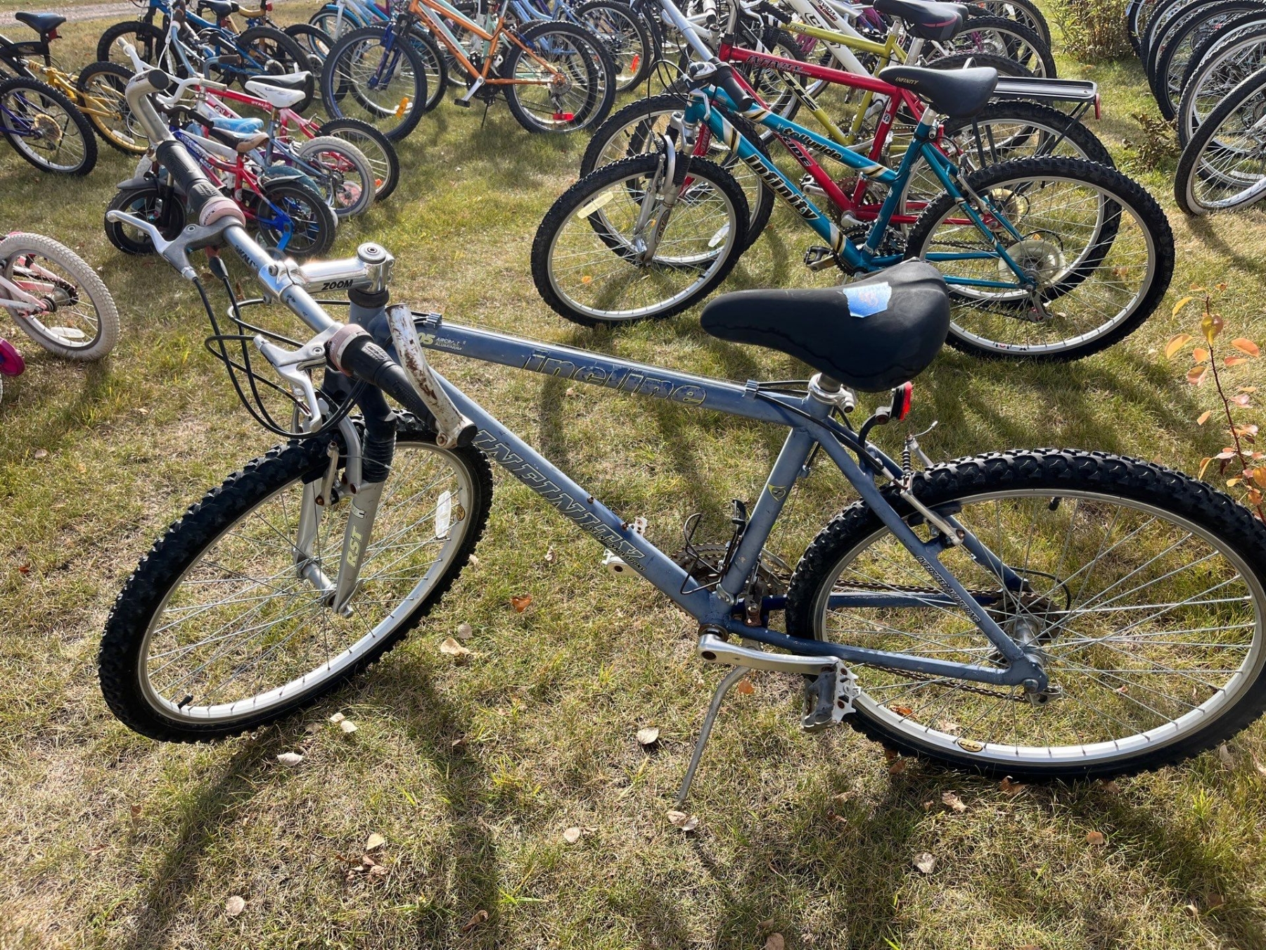 infinity mountain bike with front suspension and front quick release with aluminum back in front tires