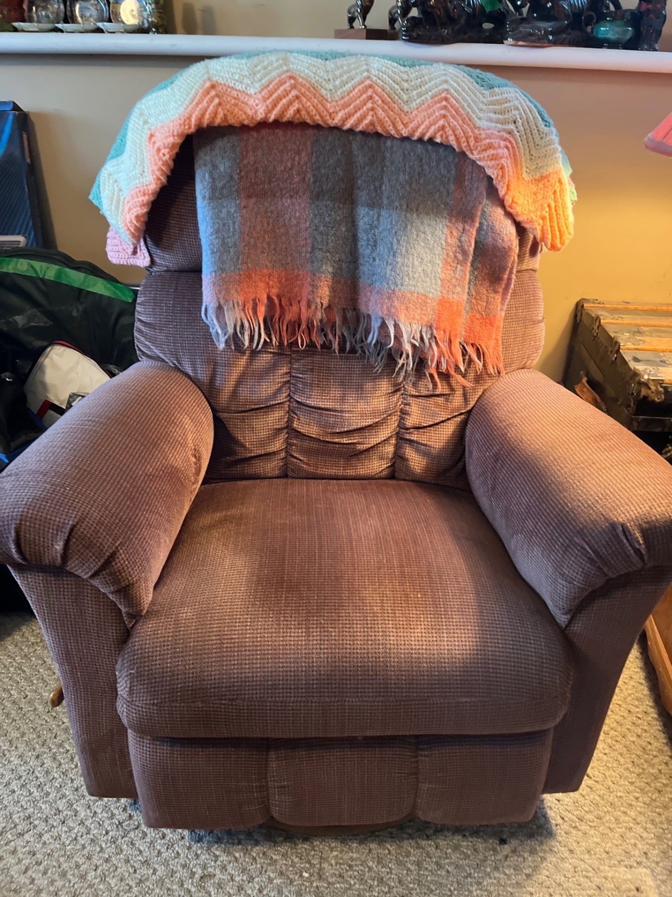 la-Z-Boy rose recliner with swivel in good condition with two handmade Afghan blankets