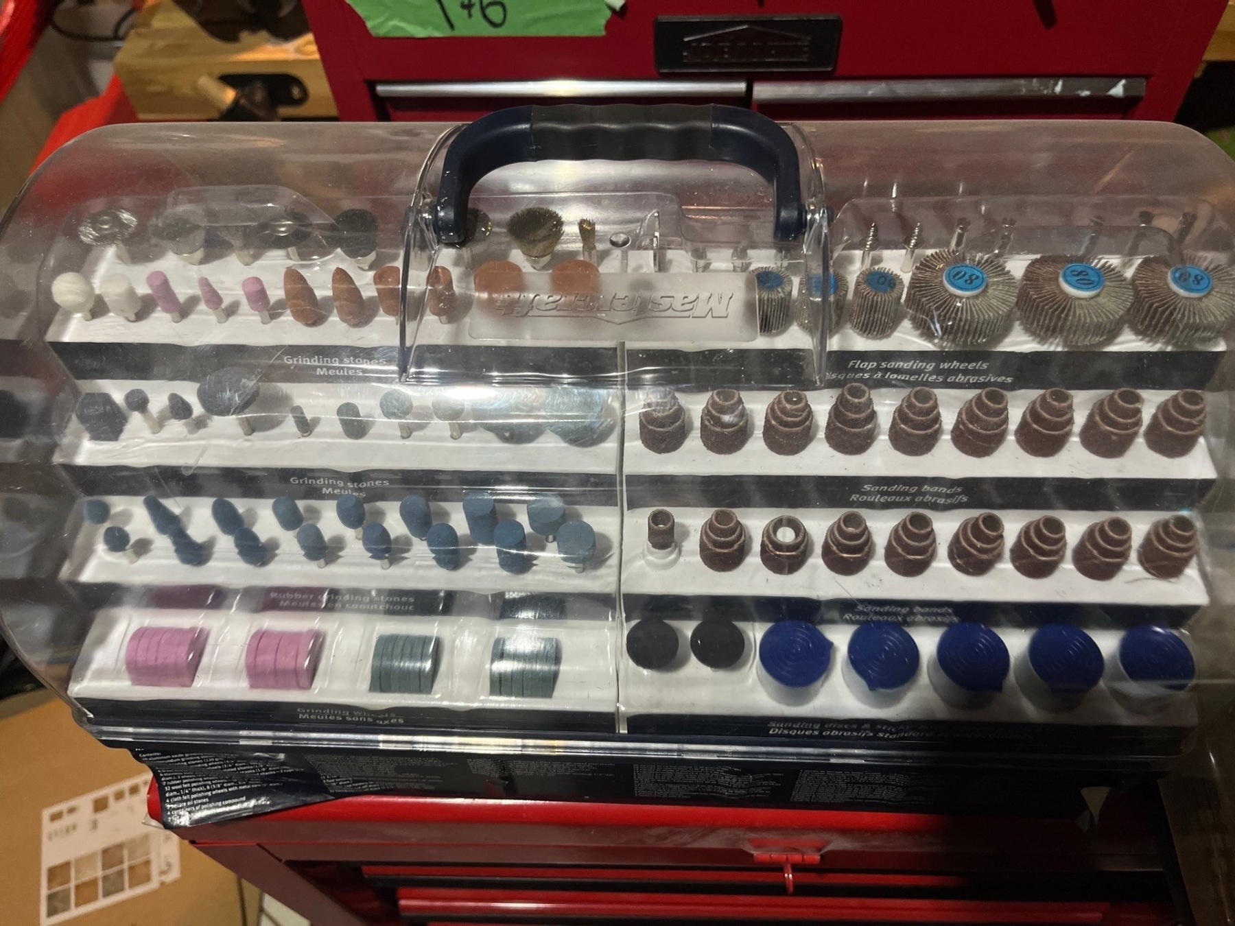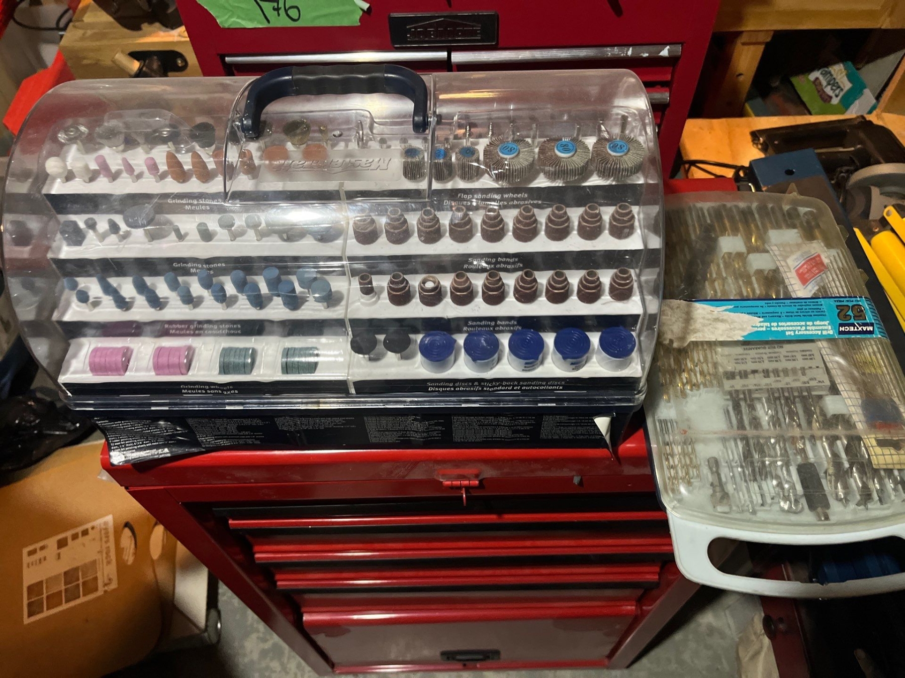 large case of Mastercraft Rotating bits and a package of new drill bits