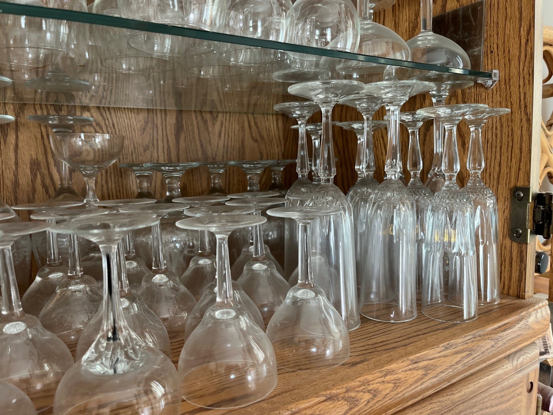 large collection of crystal glasses, wine, champagne, martini off of the other one must bring boxes to pack
