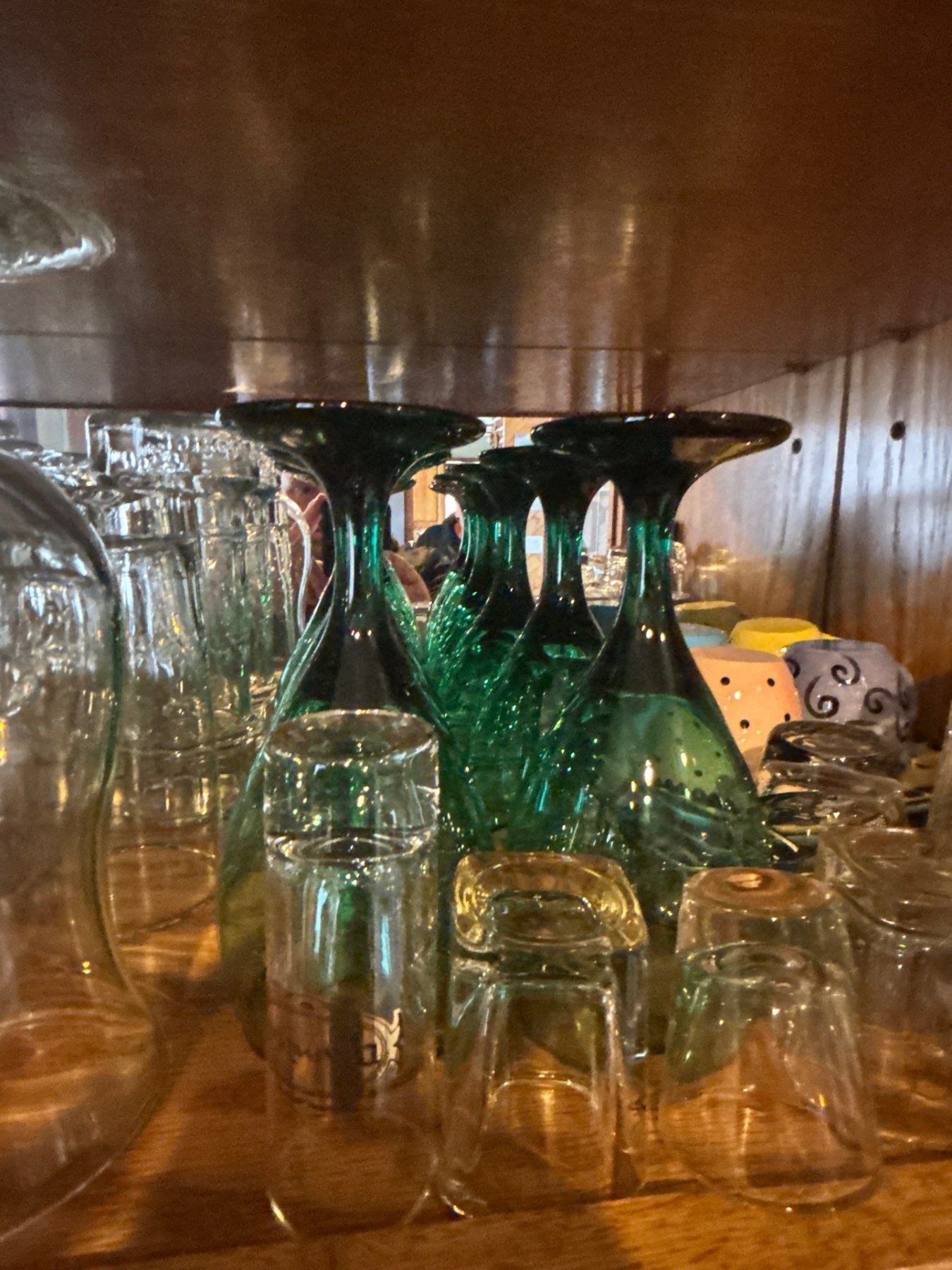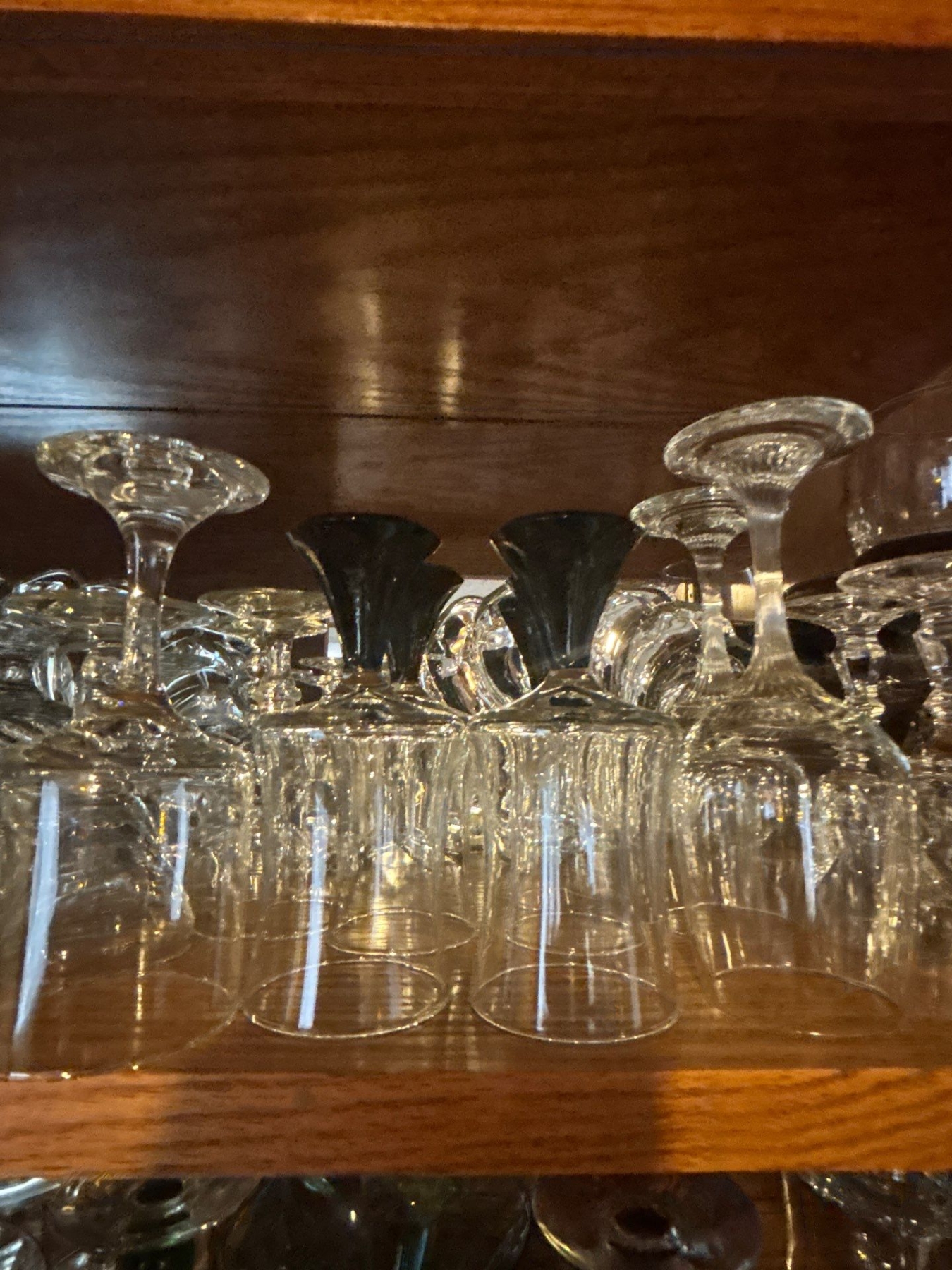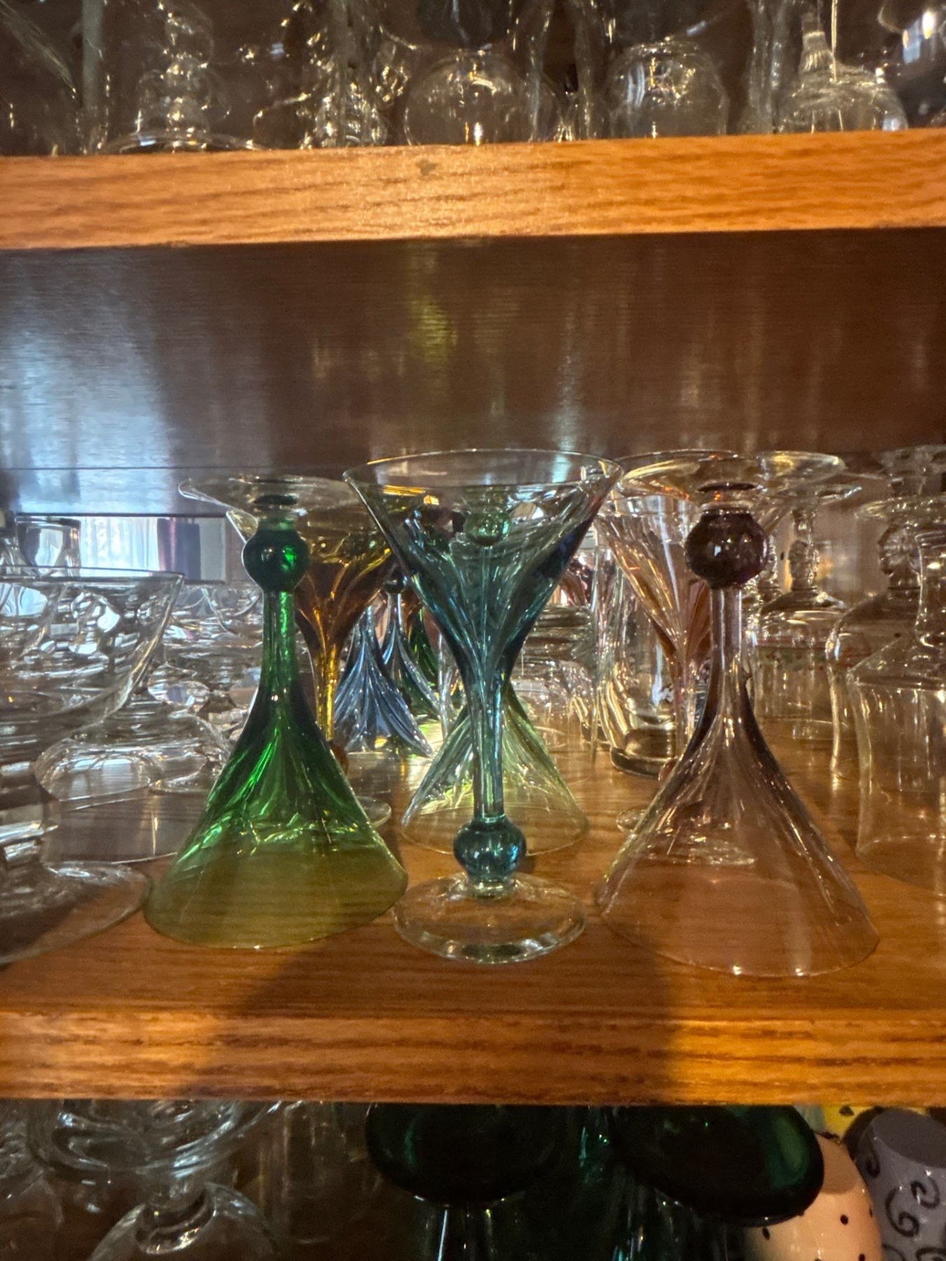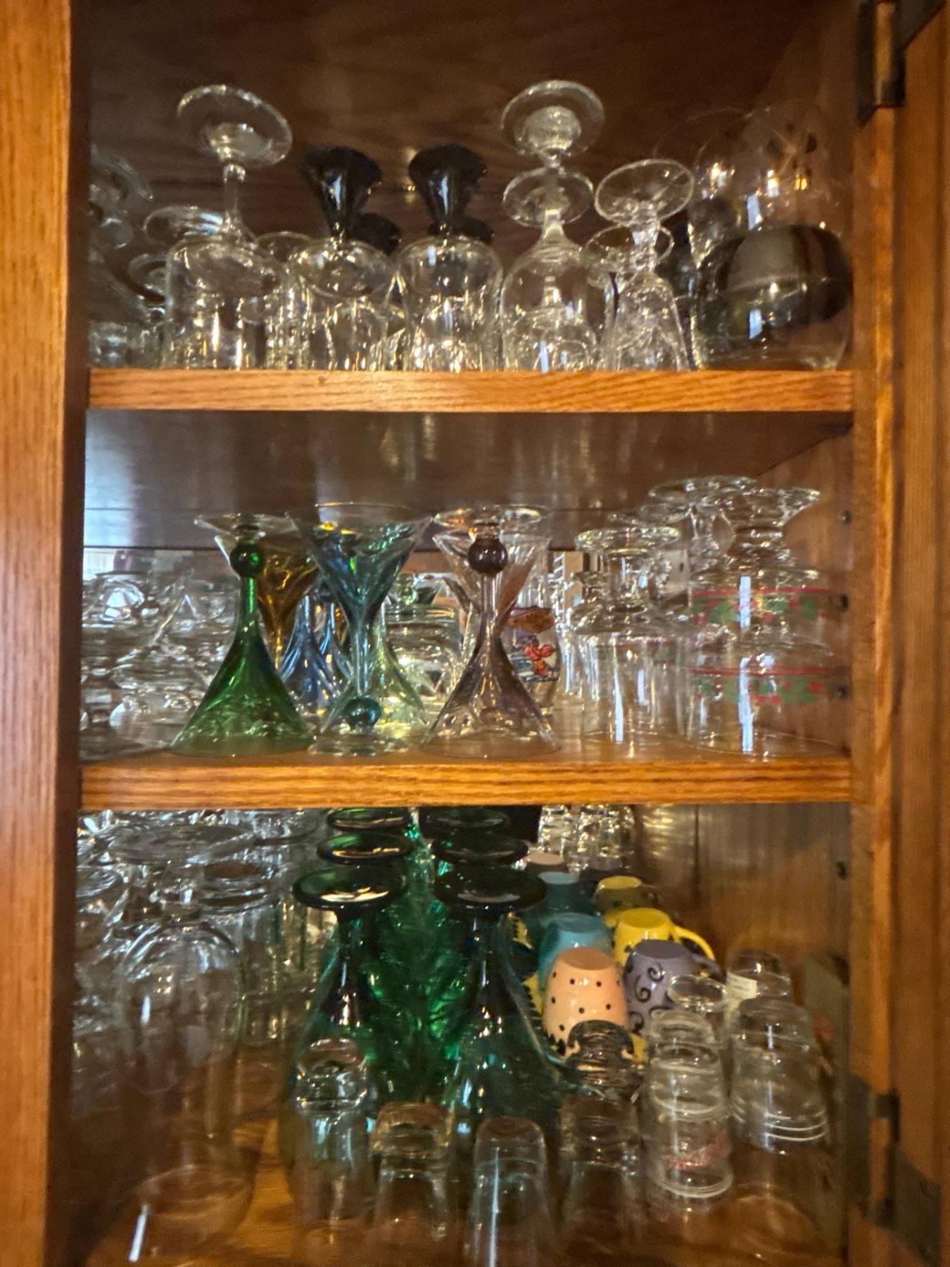 large collection of retro wine, glasses shot glasses and whiskey glasses a number of them are crystal and a collection of shot glasses