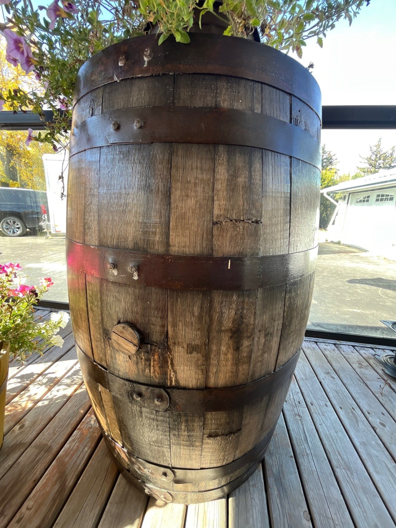large oak Whiskey Barrel