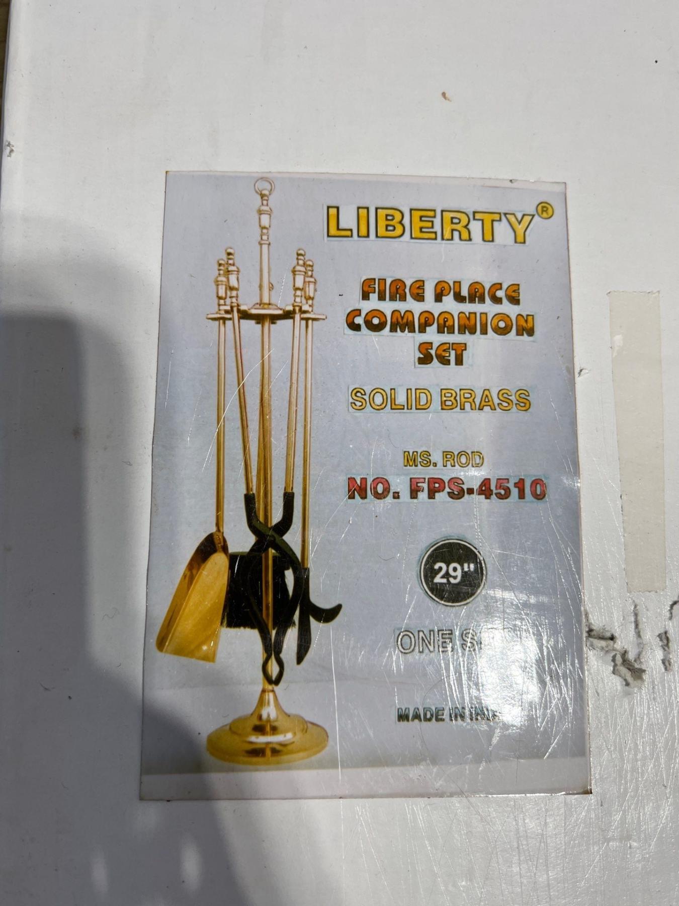 liberty fireplace companion set solid brass 29 inches new in box never used.