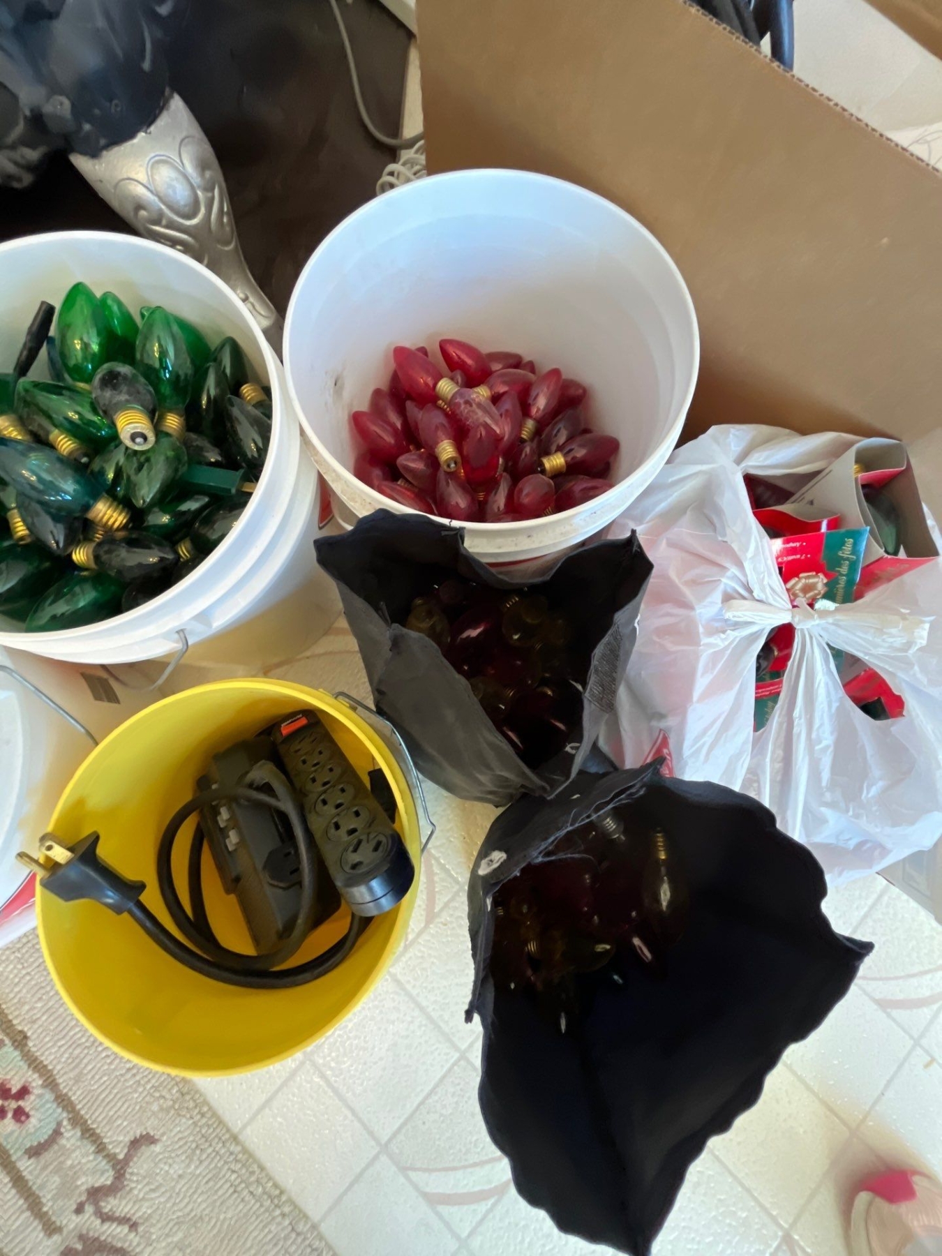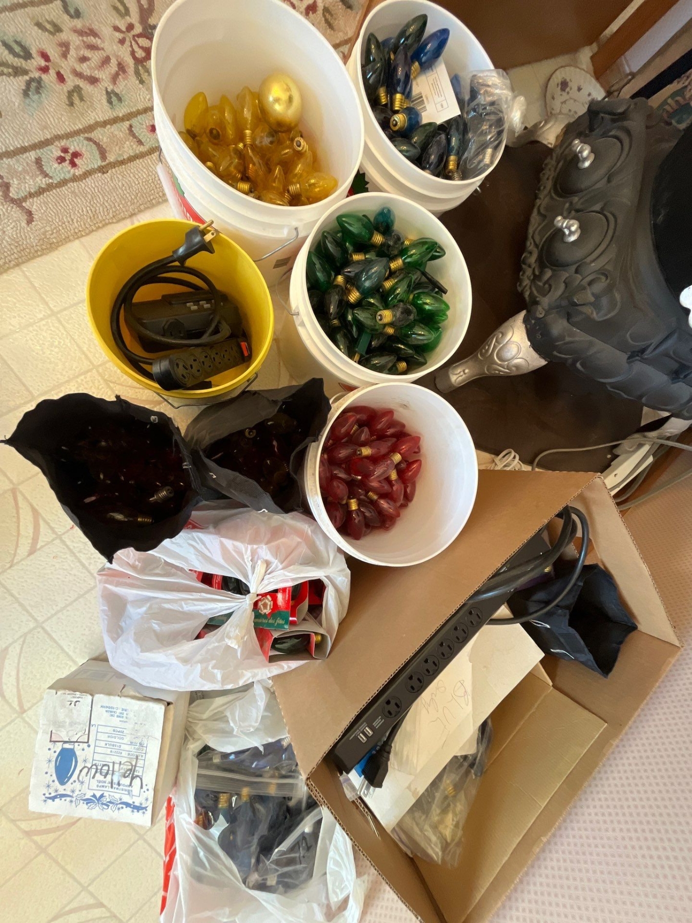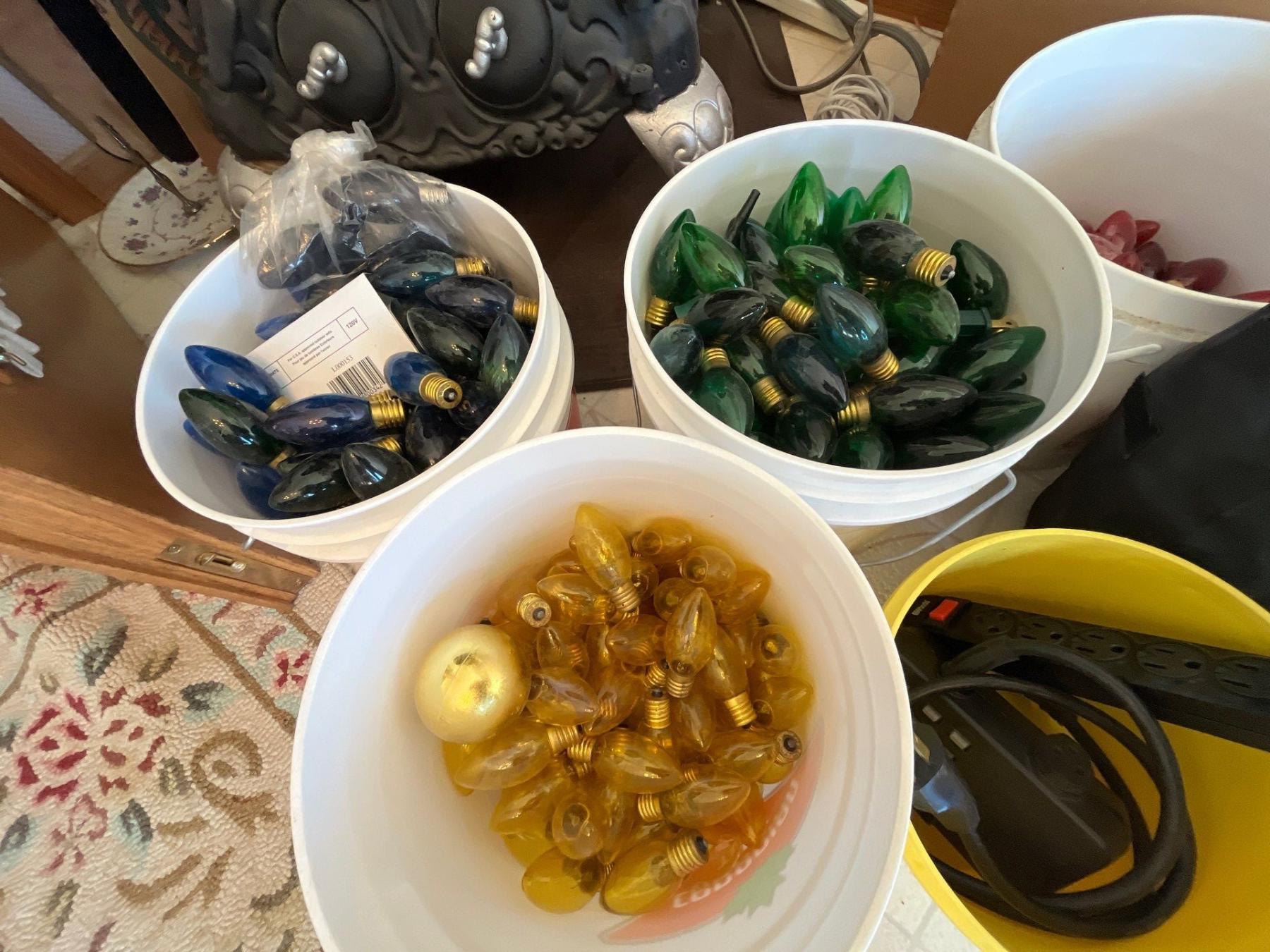 massive collection of vintage glass Christmas bulbs in all colors, green red blue yellow all new .
