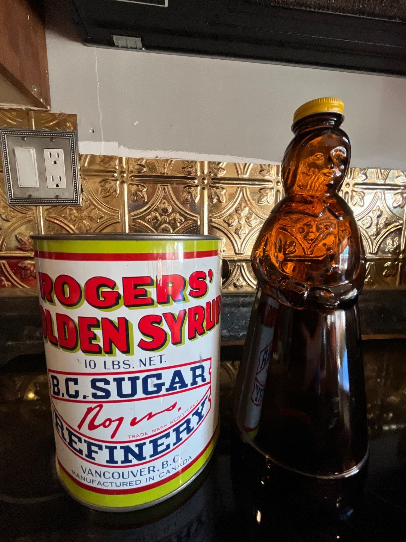 original aunt Jemima syrup bottle and Rogers Golden syrup made in Vancouver Tin