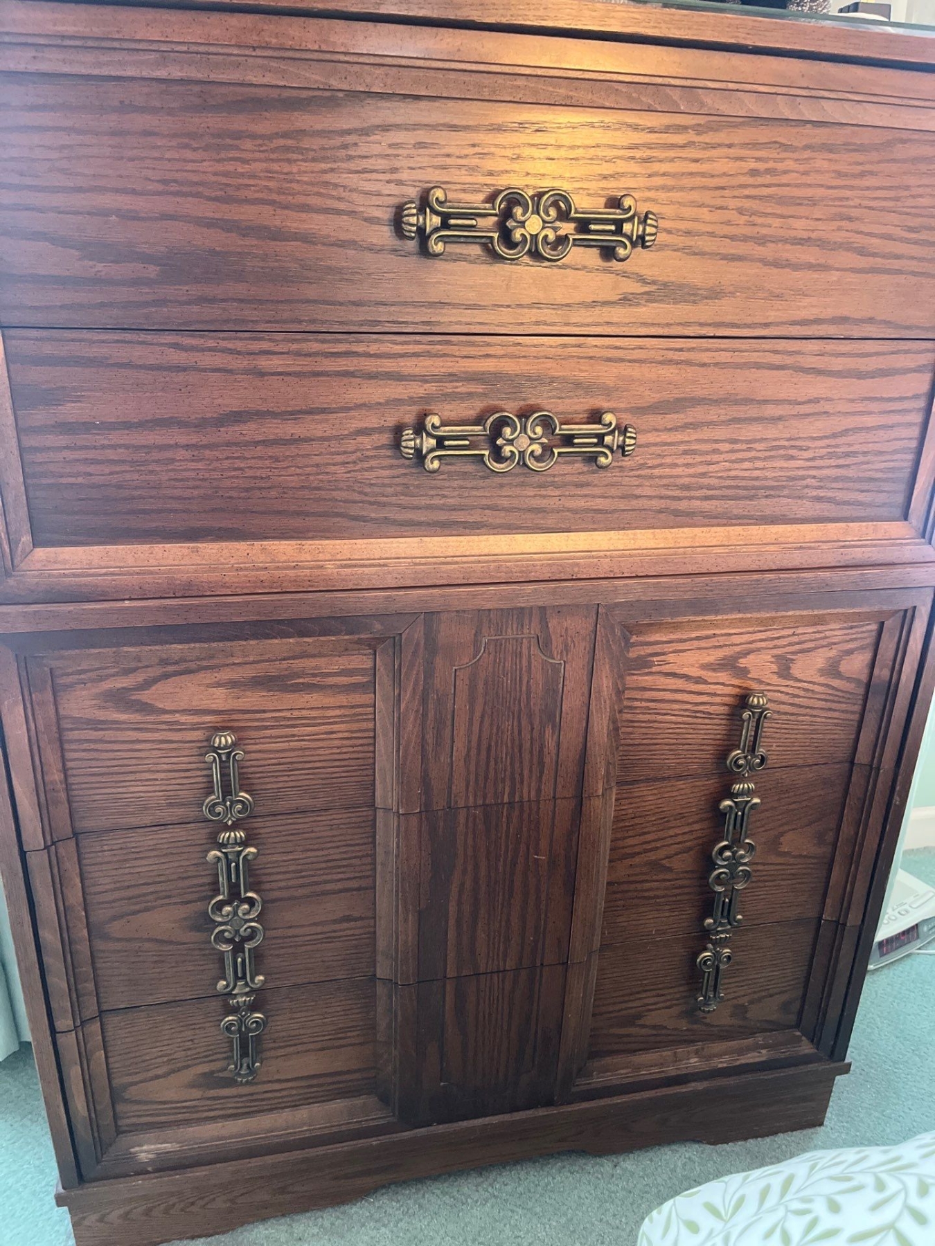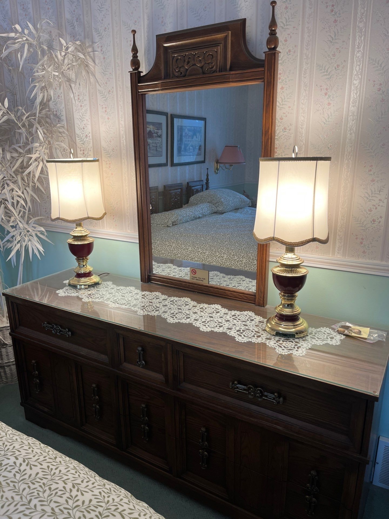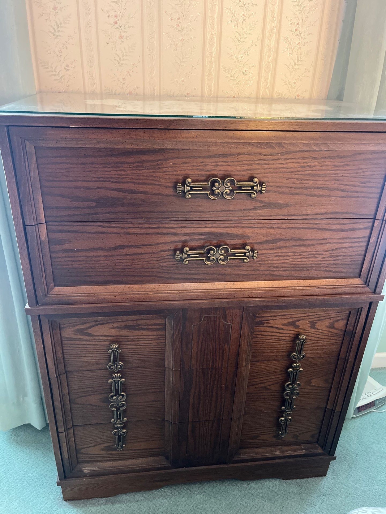 retro bedroom set made by Princeville. including headboard, two nightstands, dresser, and mirror and one tall dresser. Lamps, bedding, mattress and artwork not included . Amazing condition well taking care of all dressers and nightstands have glass tops.