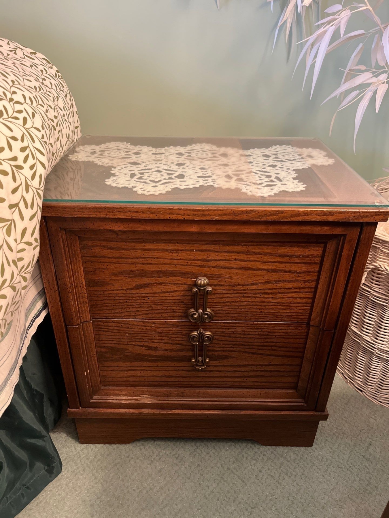 retro bedroom set made by Princeville. including headboard, two nightstands, nightstands, dresser, a