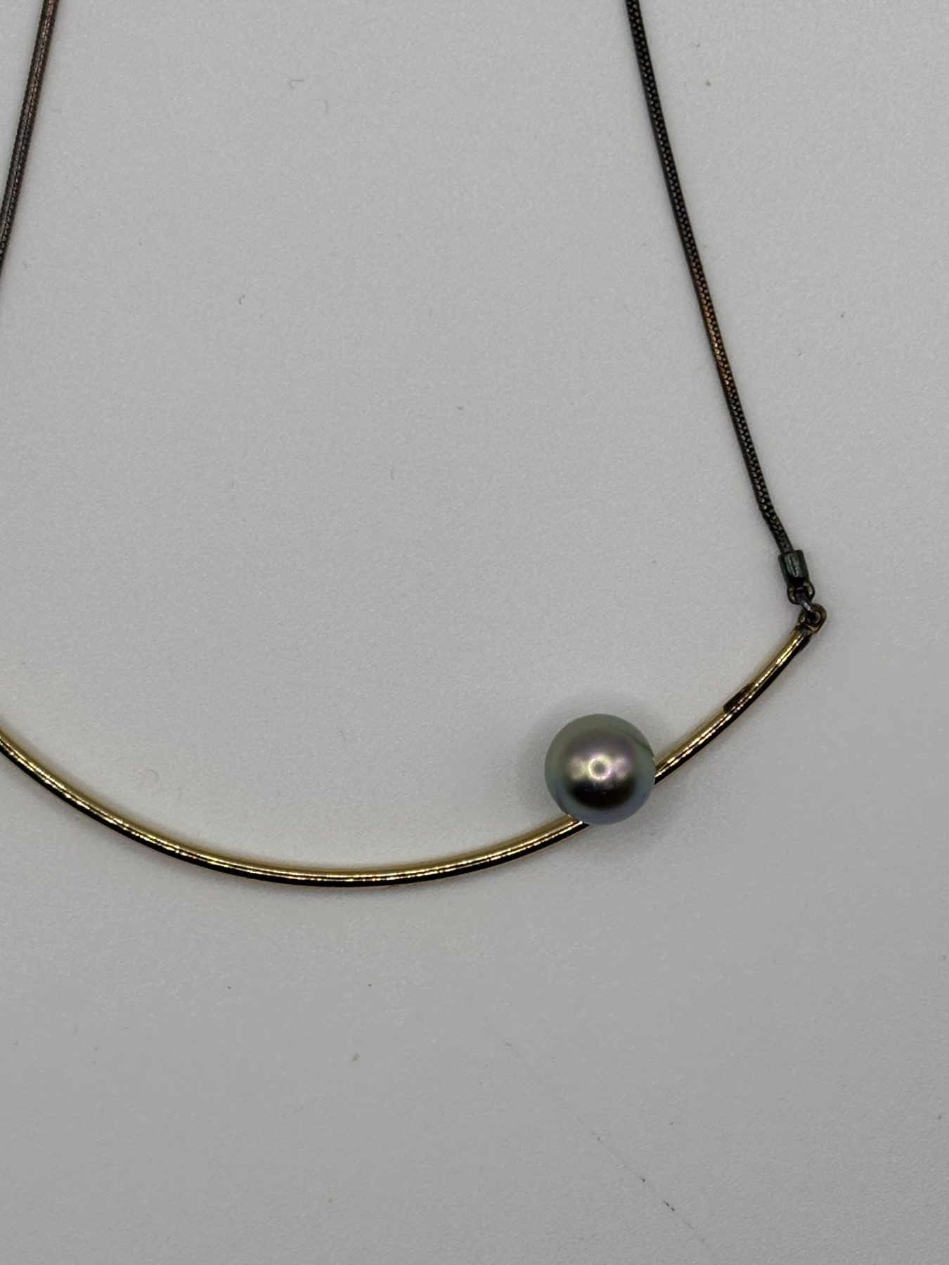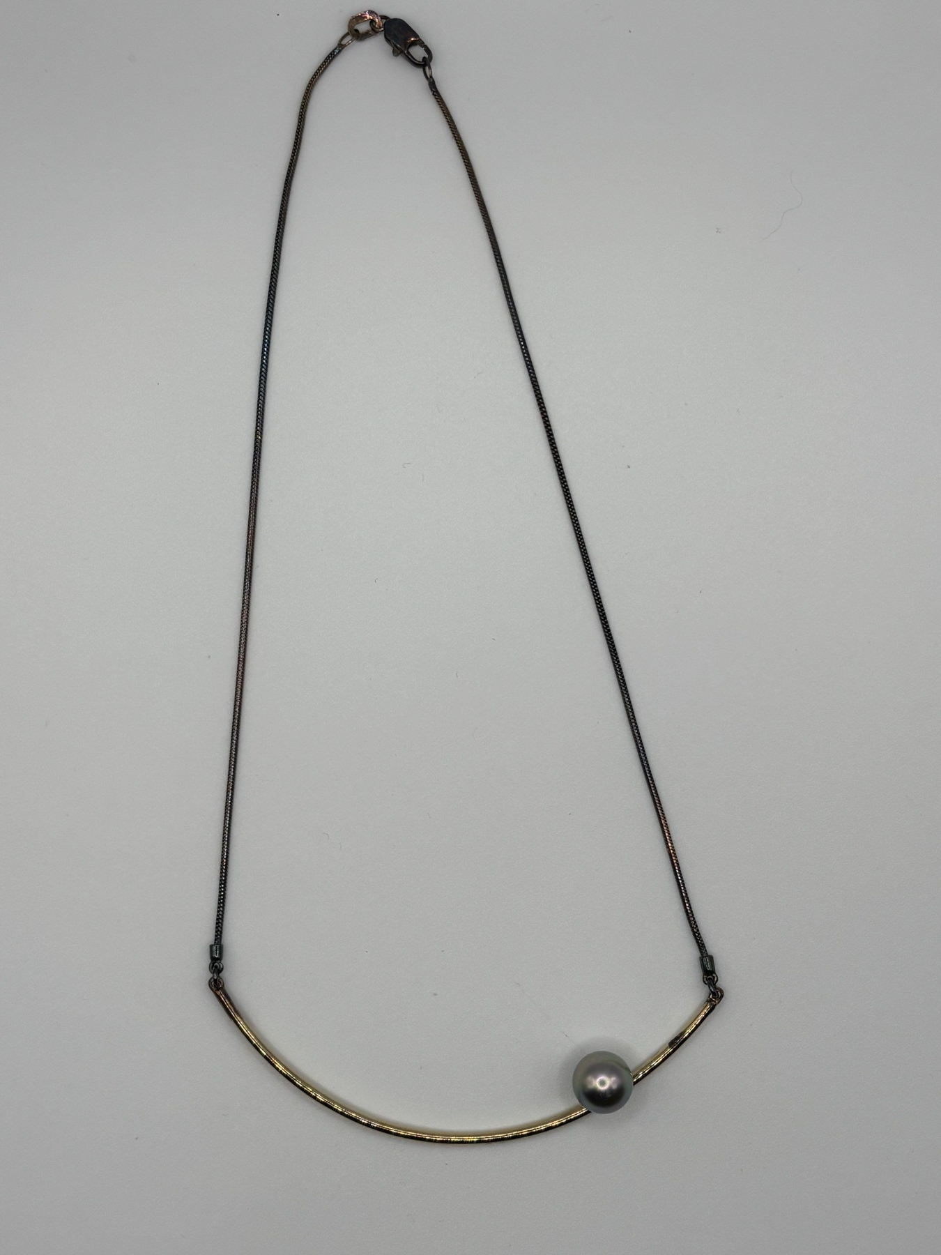 silver and gold necklace with pearl 14 k 4.51 g gold piece with pearl .925 silver chain 2.6 g