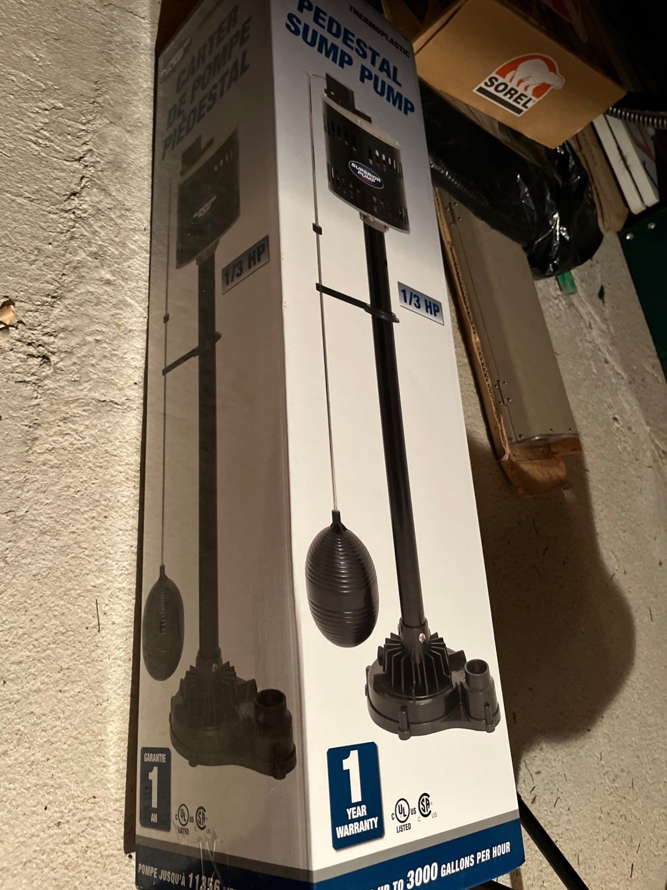 superior pump. Thermoplastic. pedestal sub pump pumps up to 3000 gallons per hour. 1/3 HP. New never used. there are 2 of these items this is the second one