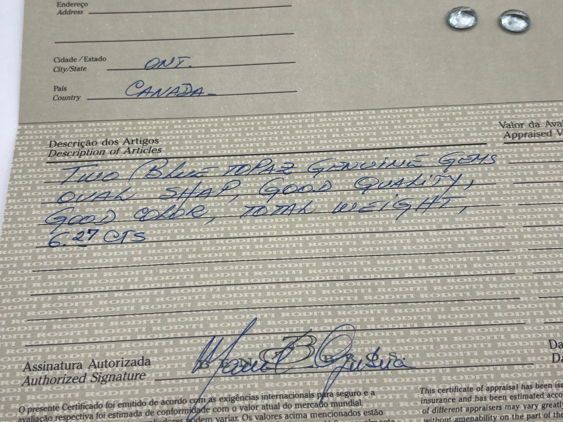 two blue topaz gemstones oval in shape total weight 6.27 carats 3.08 carat & 3.19 carat