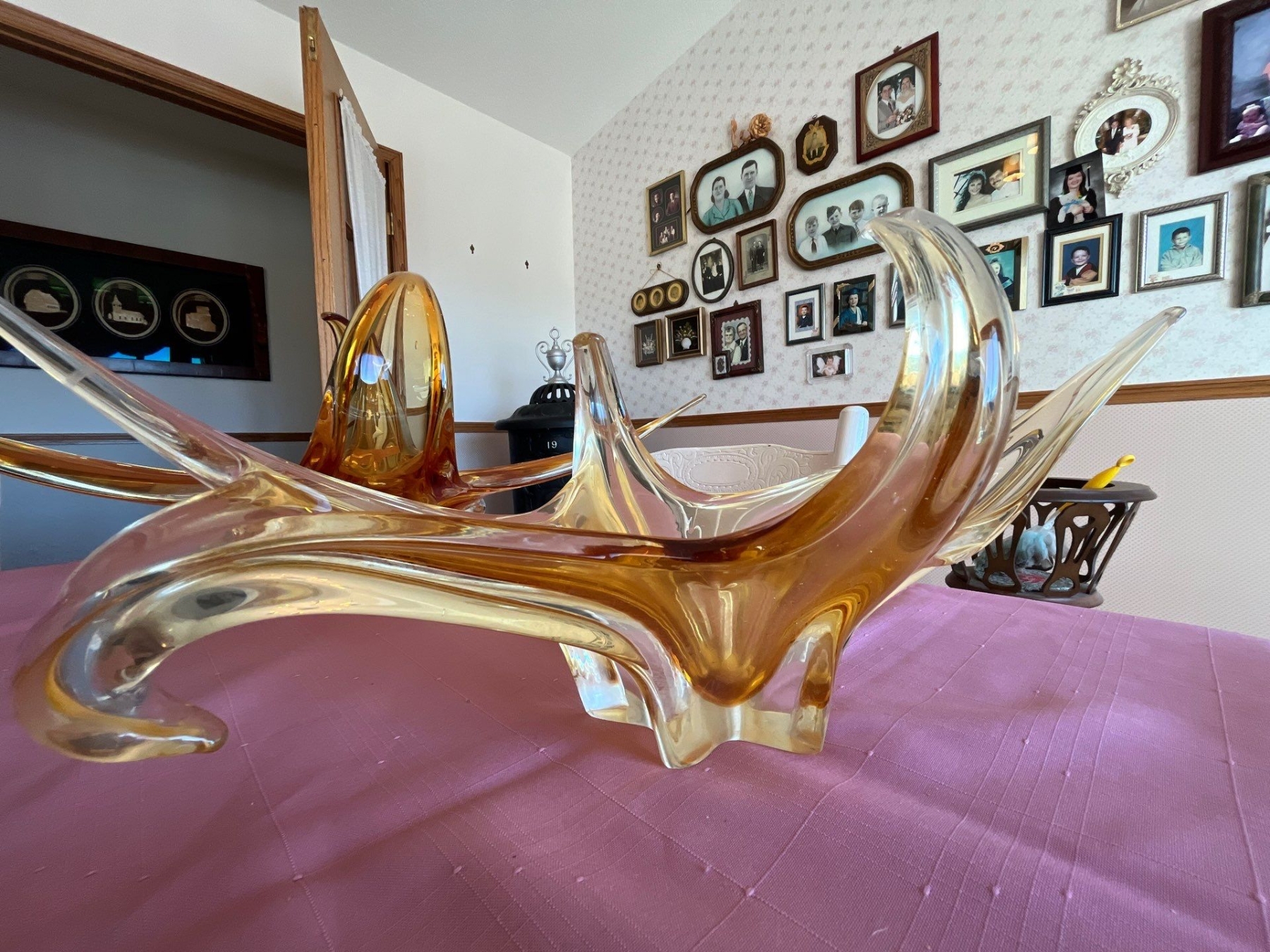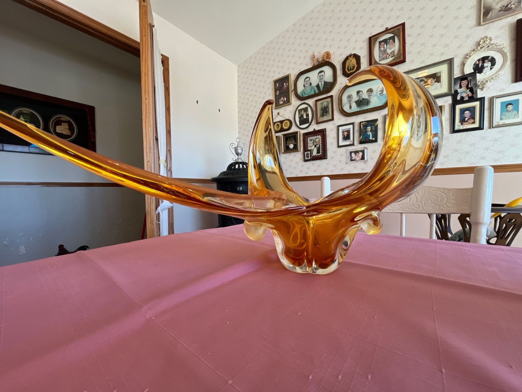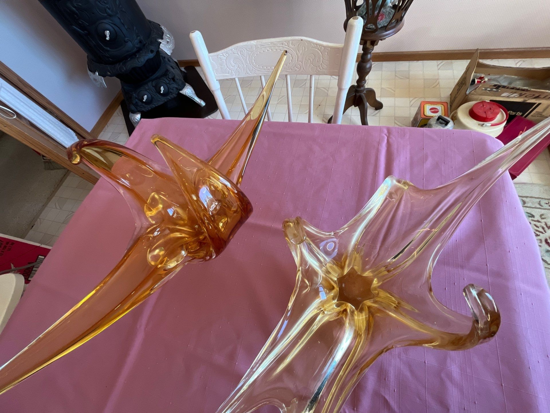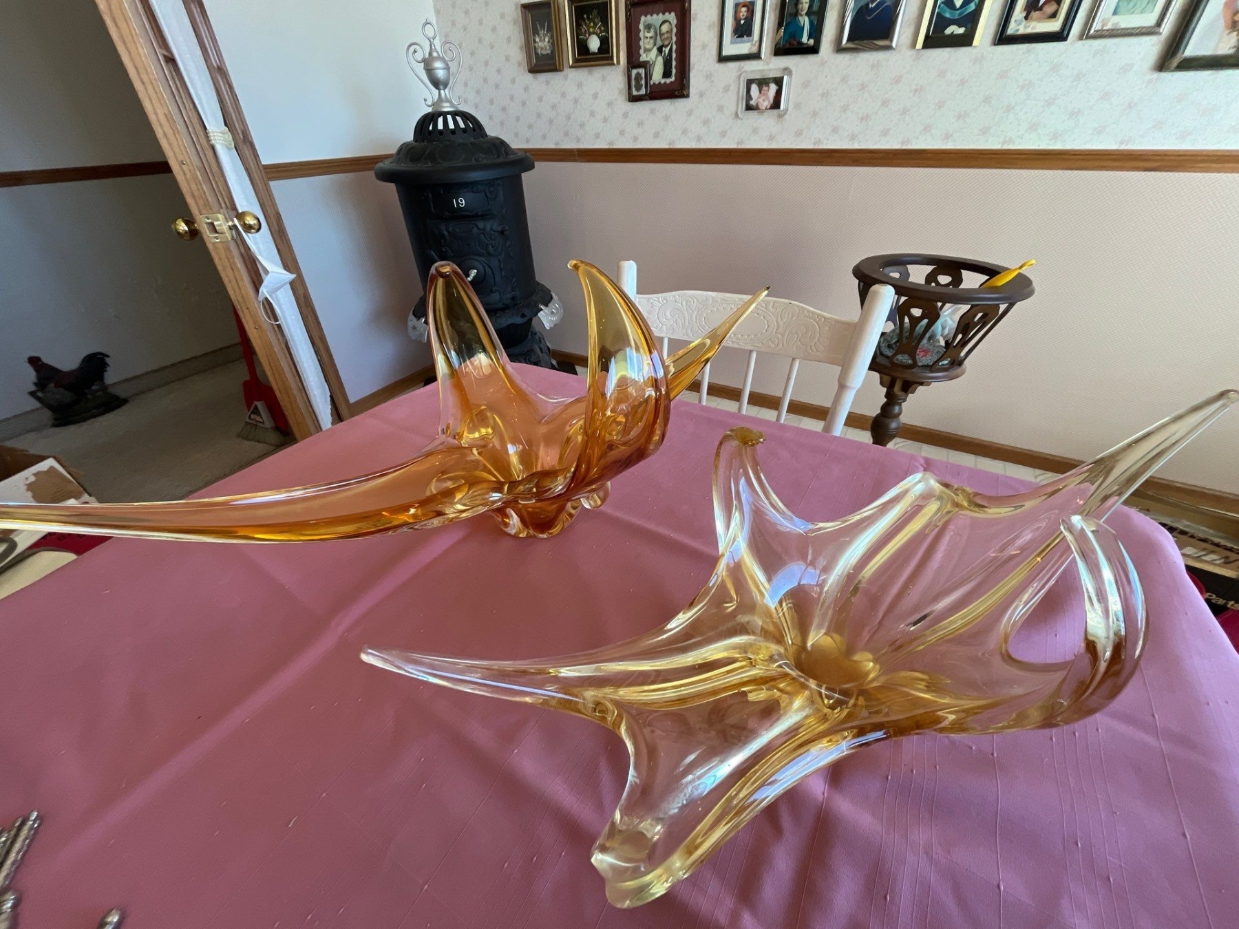 vintage amber Chalet Artistic Glass stretch arm bowls an amazing condition great for any collection large is 27 inches long medium size is 21 inches long