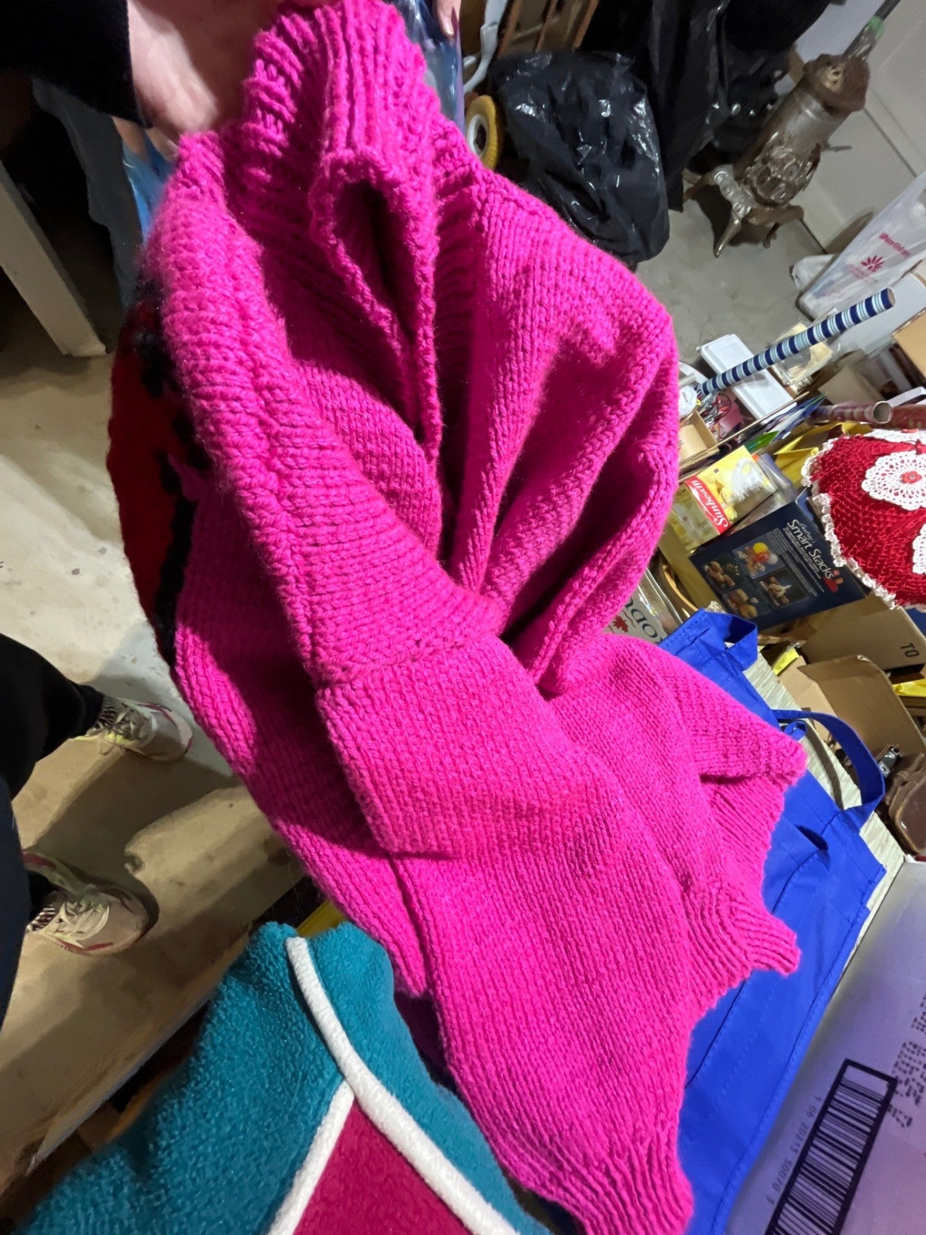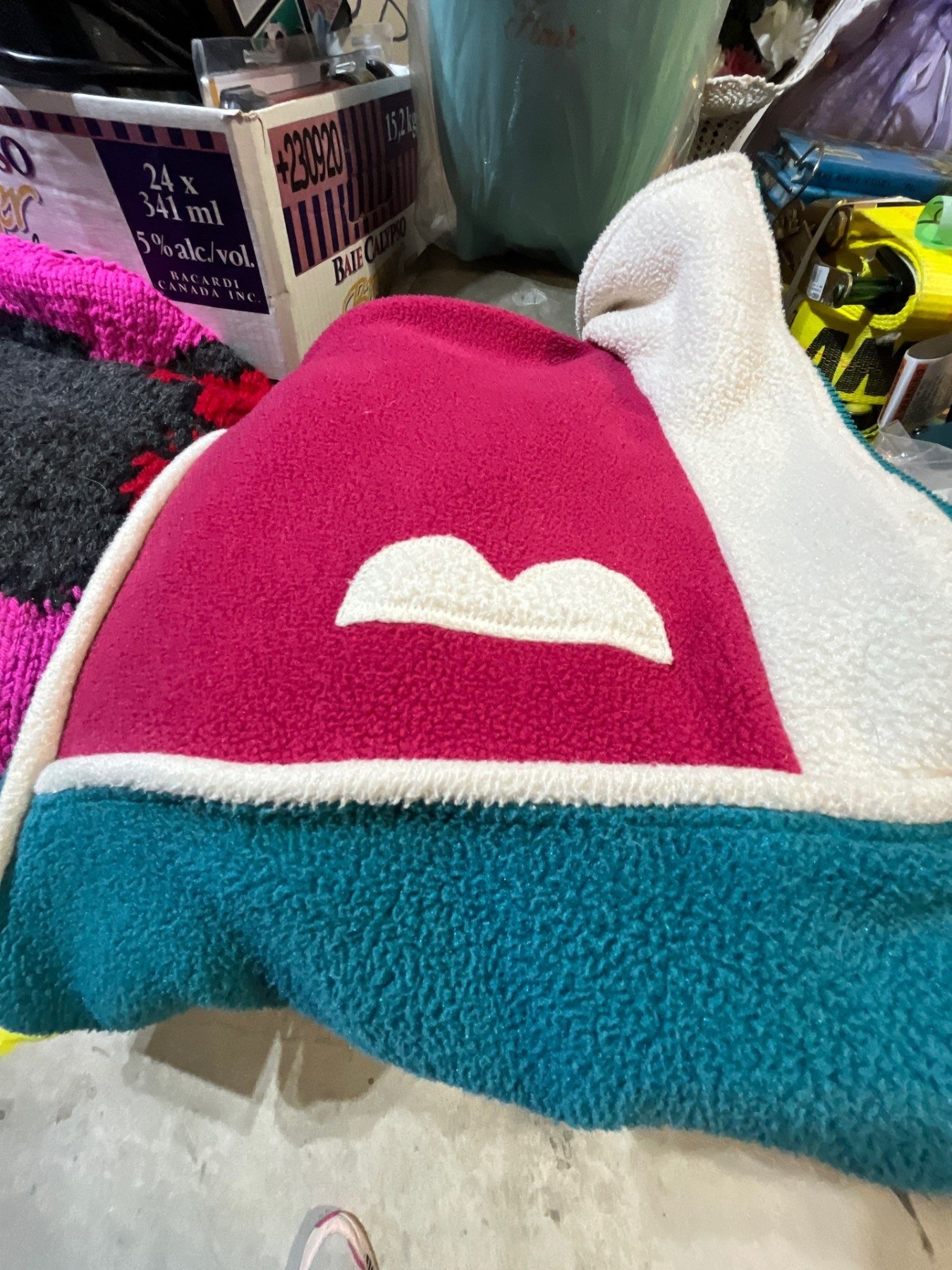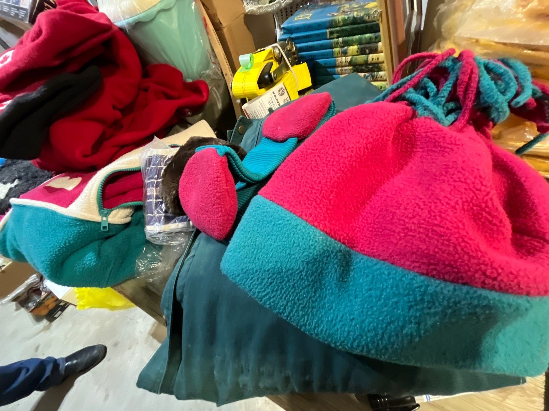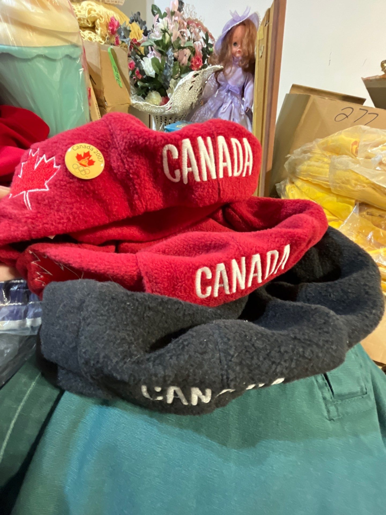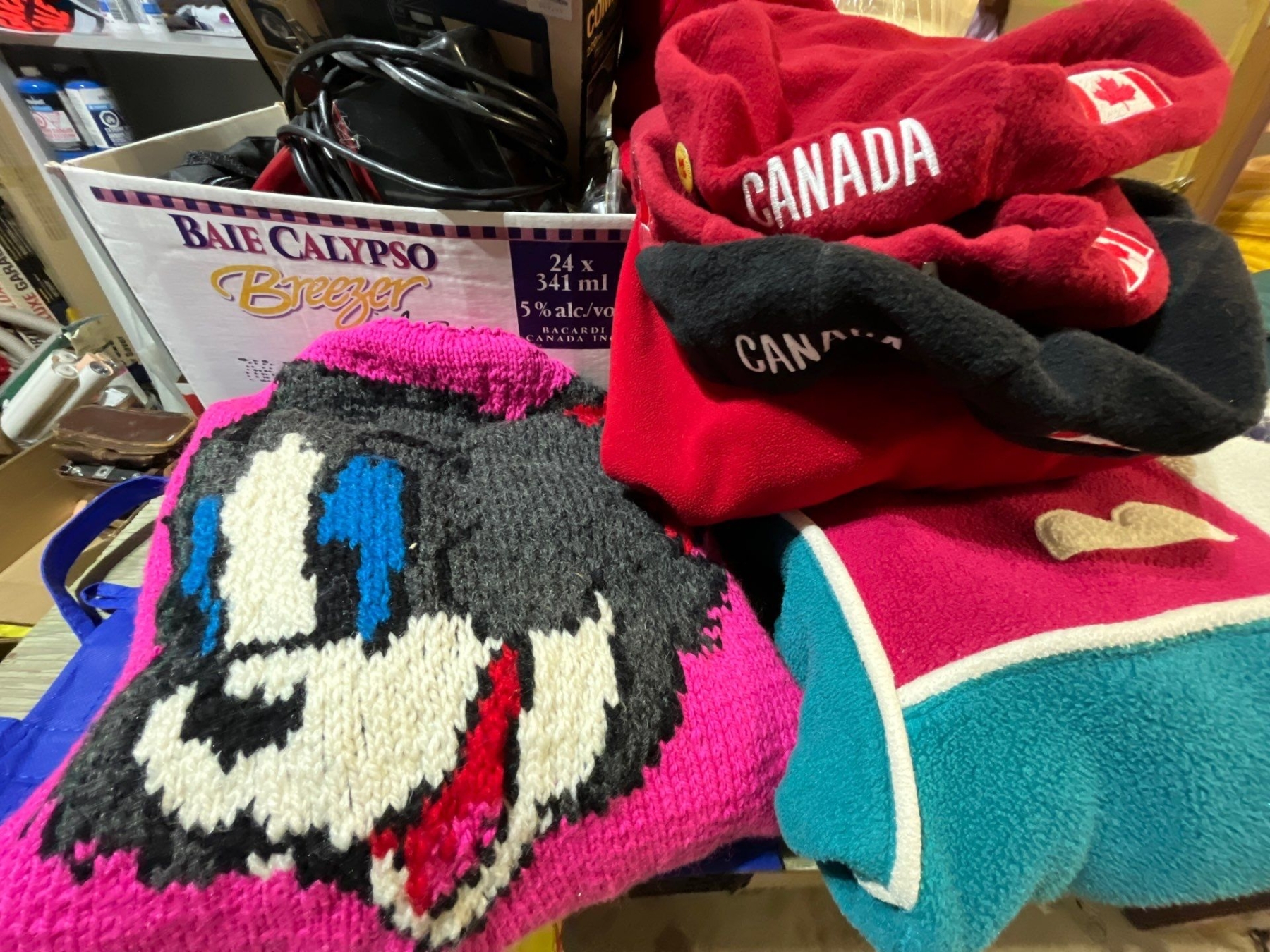 vintage clothing along with a hand, knitted Tom and Jerry wool sweater Canadian Olympic hats . And fleece pullover.
