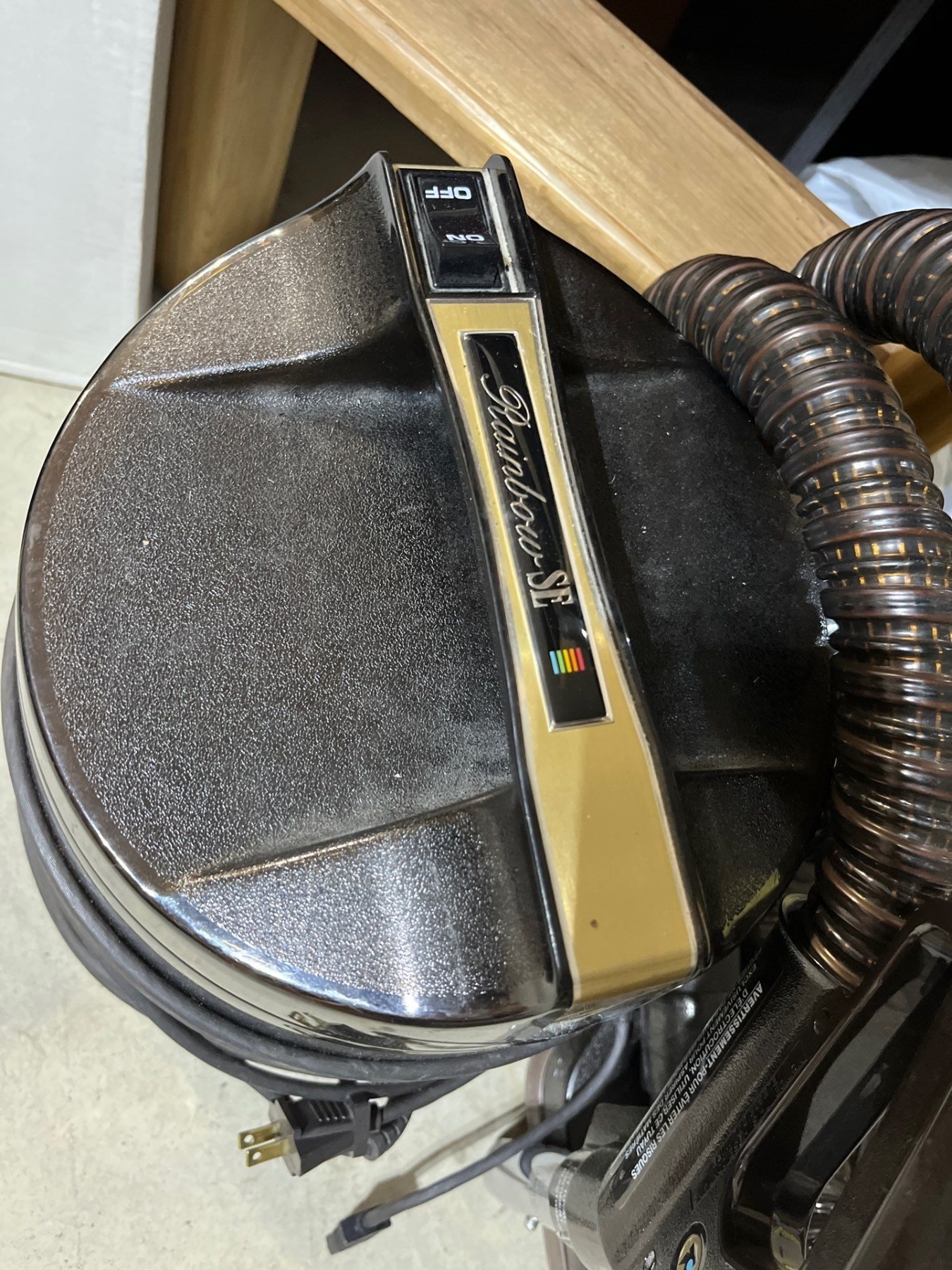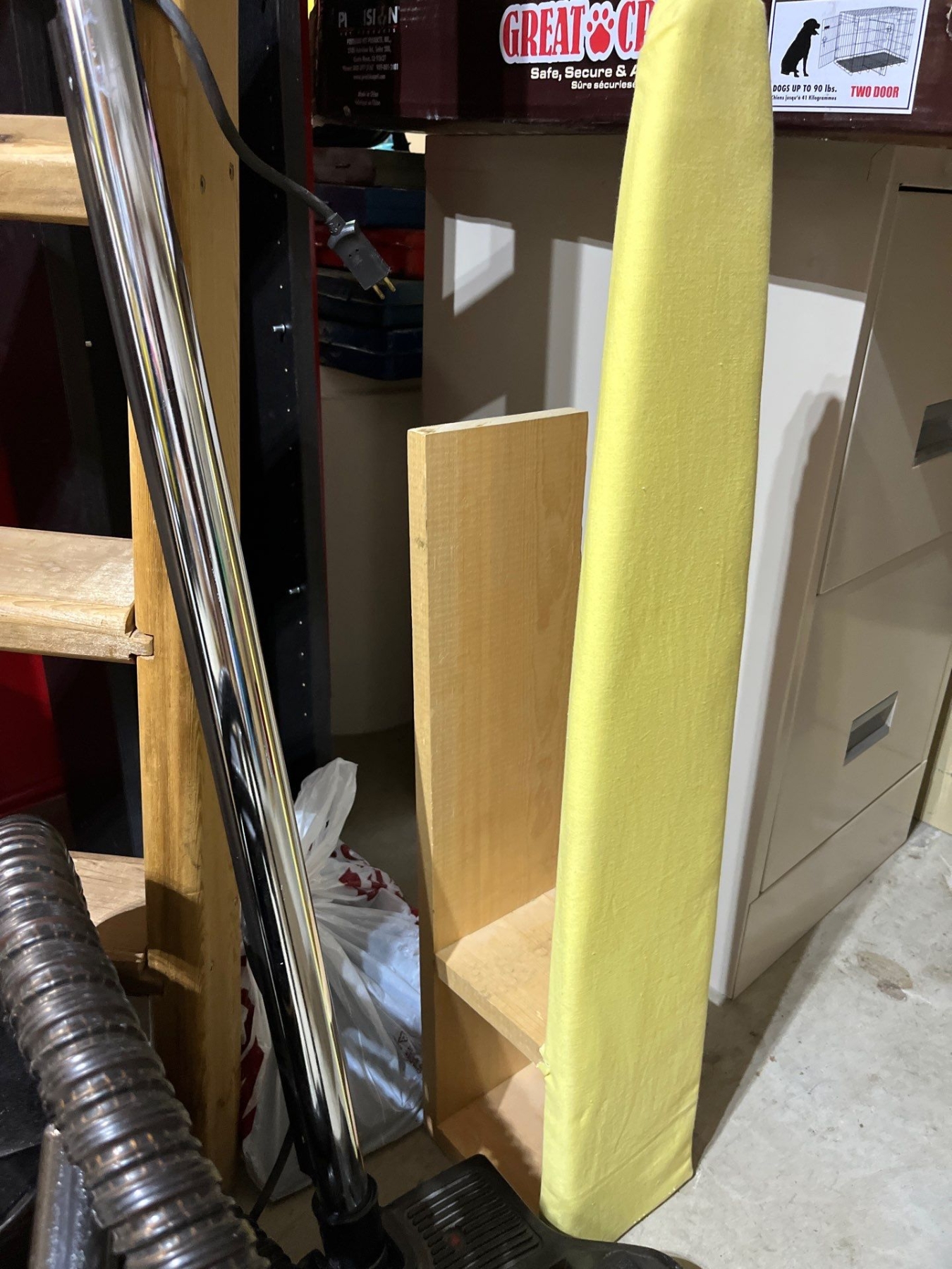 vintage ironing board, CD rack, wooden ladder and a vintage rainbow SC, vacuum cleaner and full wood