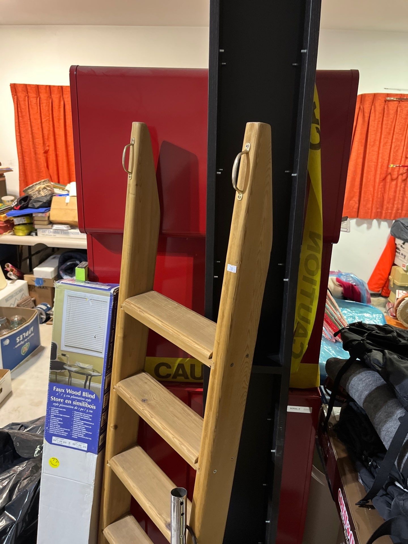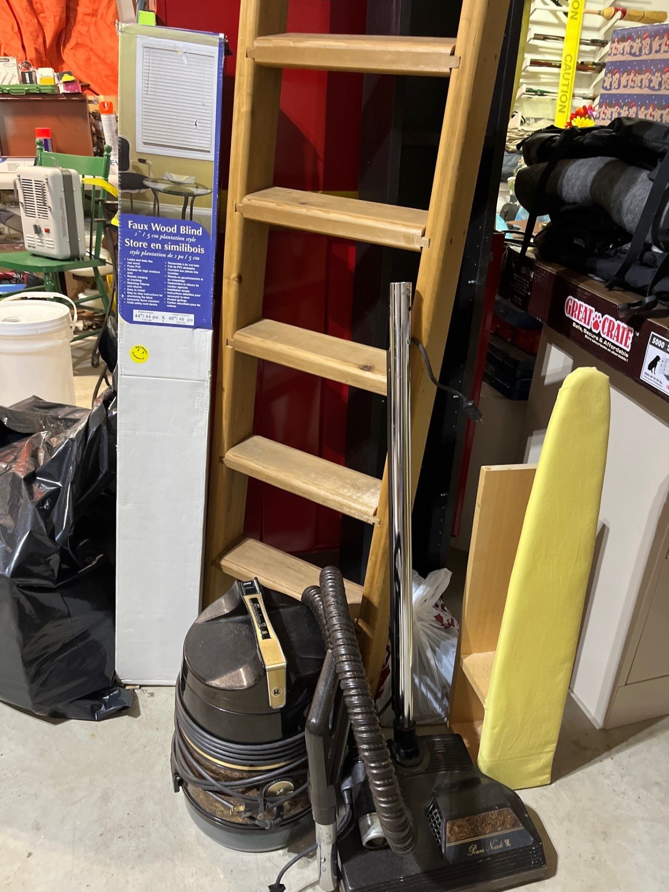 vintage ironing board, CD rack, wooden ladder and a vintage rainbow SC, vacuum cleaner and full wood blinds set new inbox