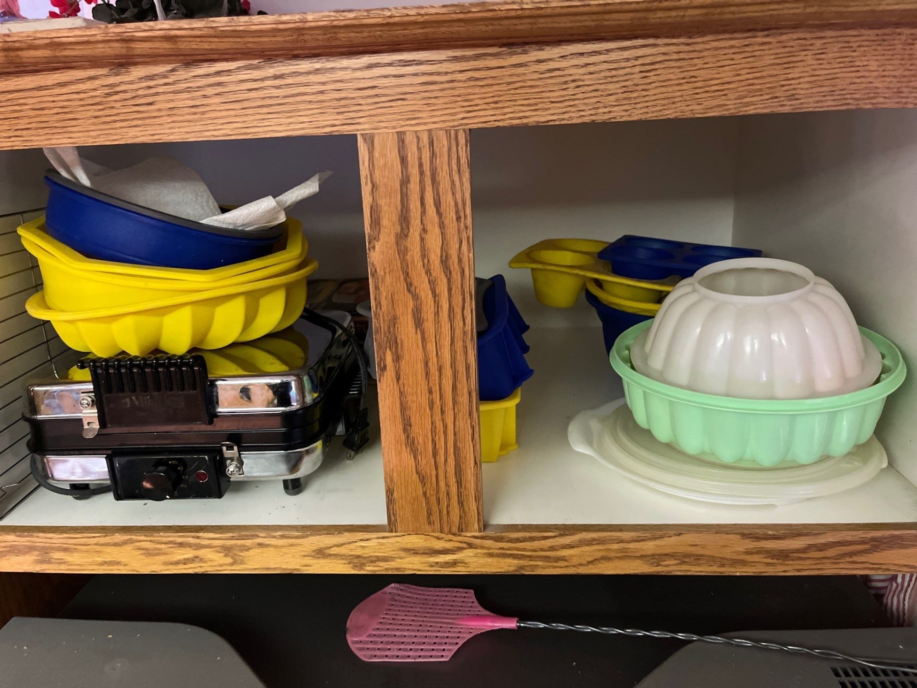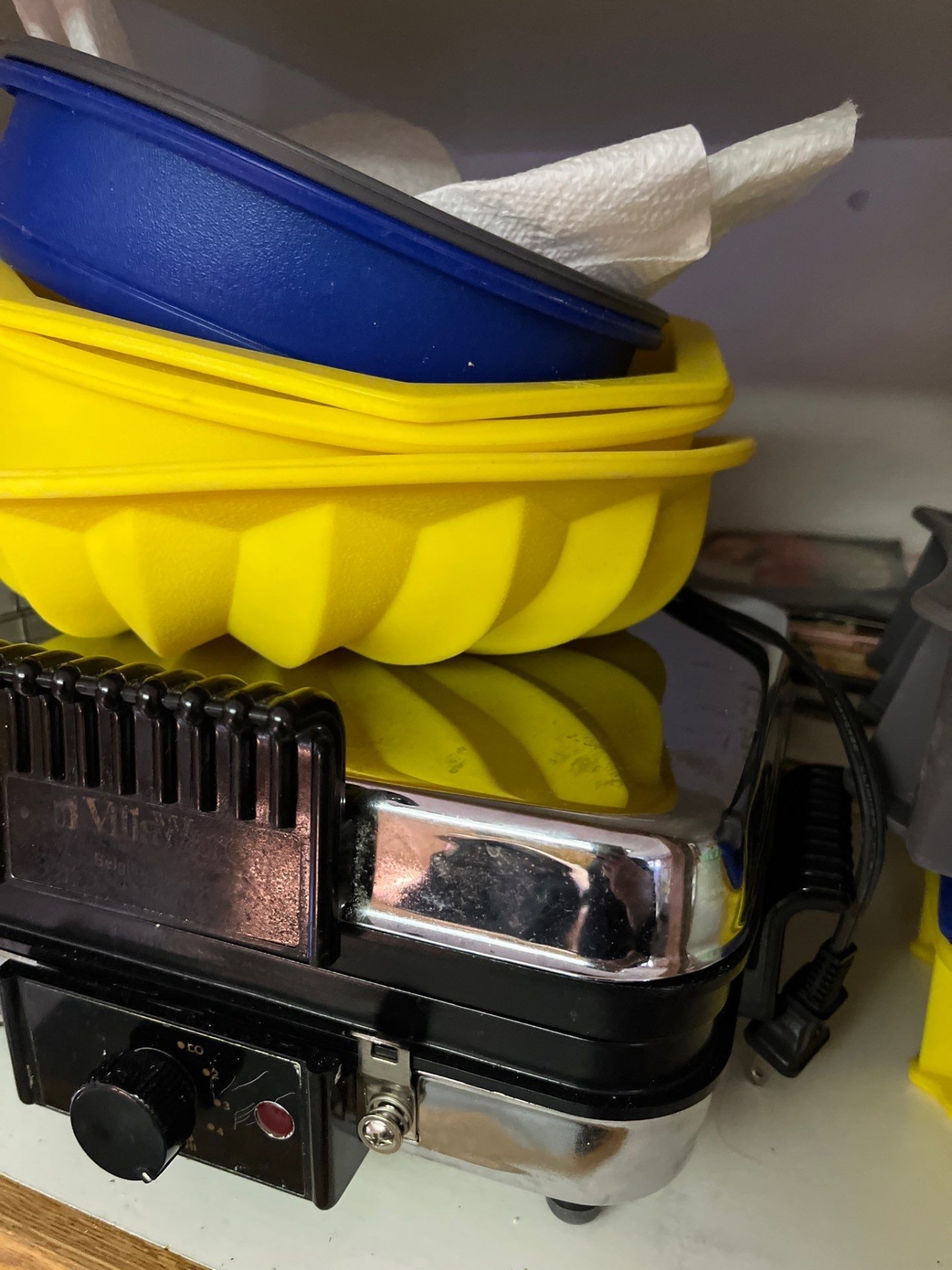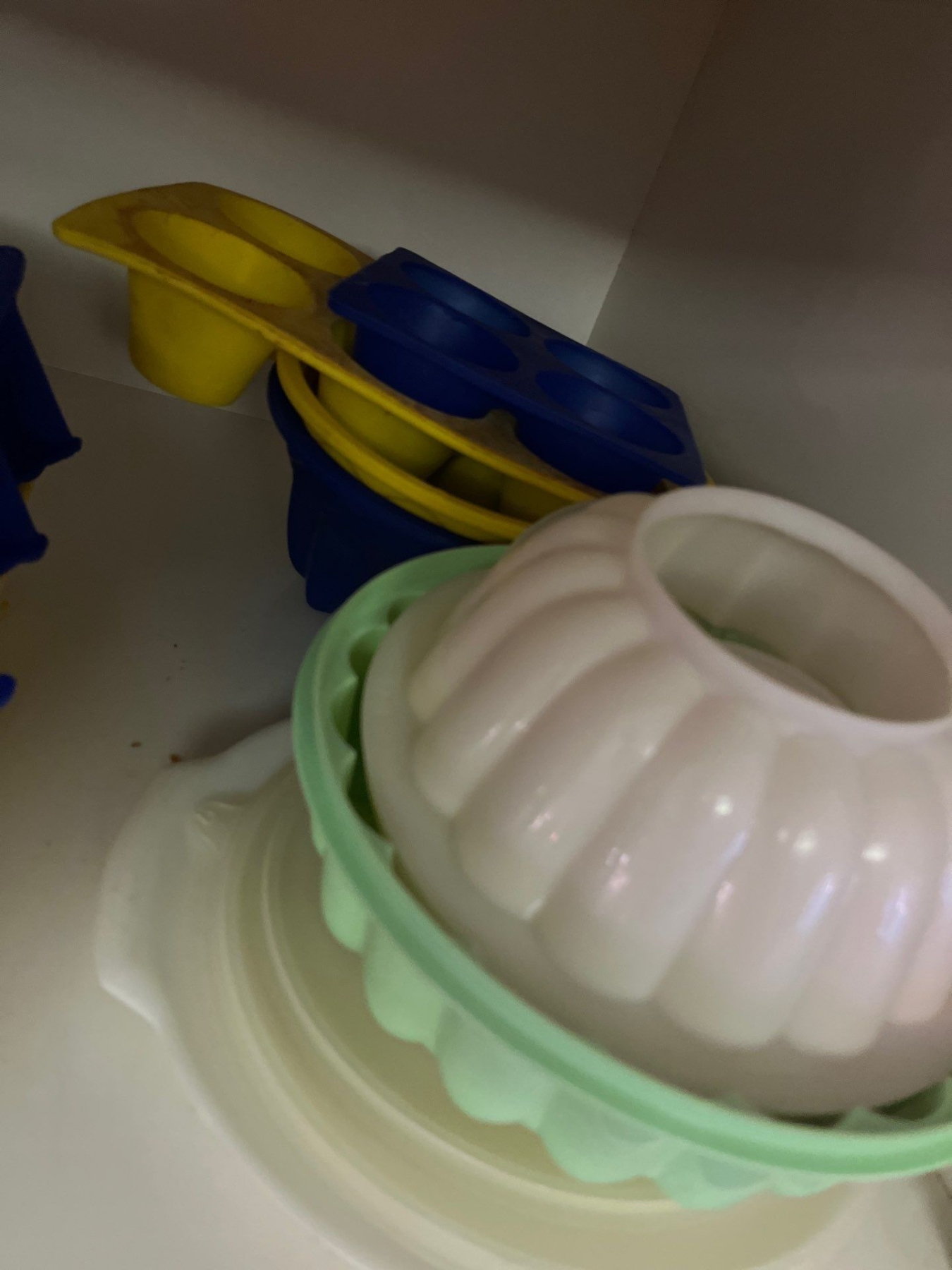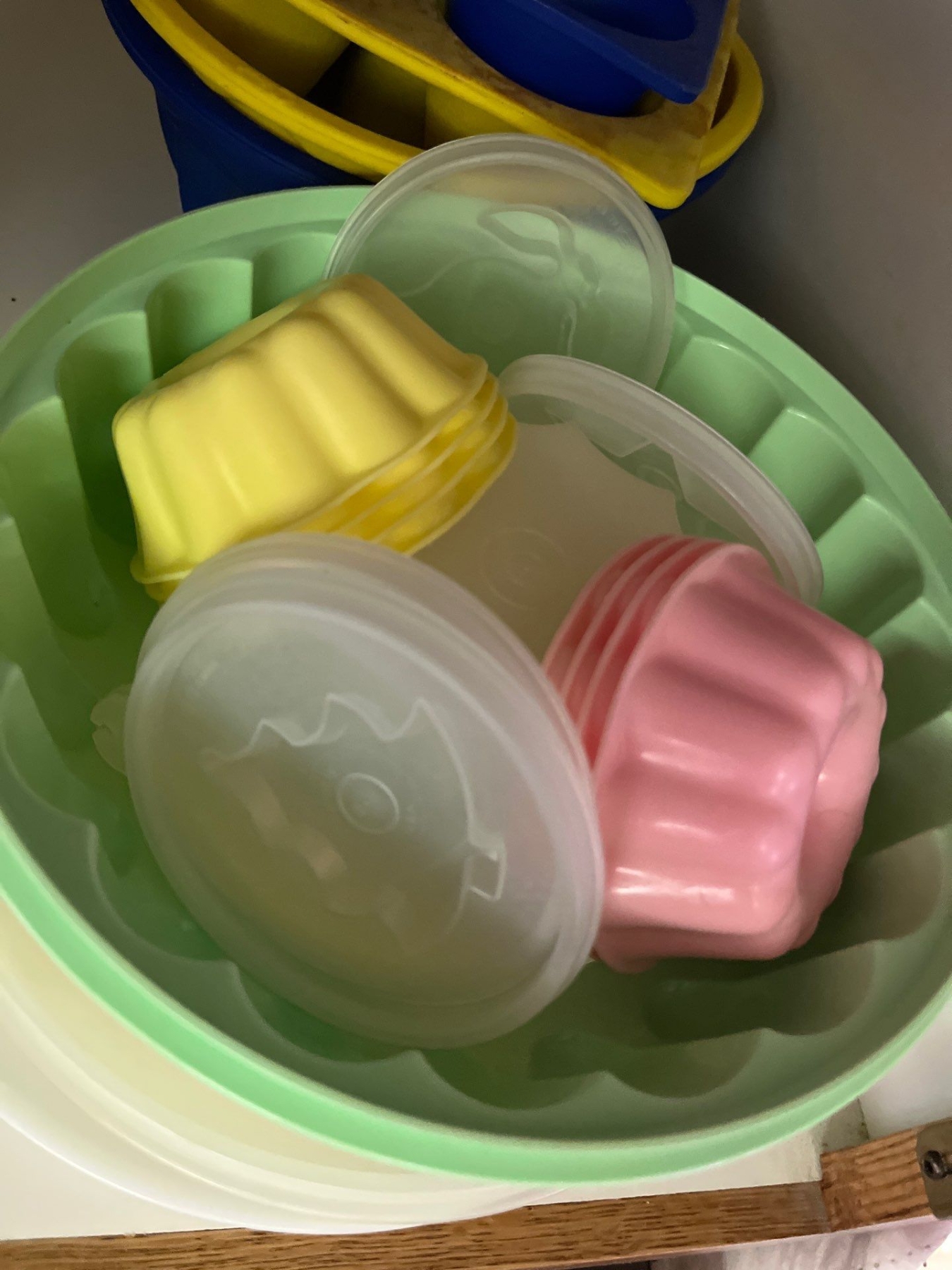 vintage waffle iron Tupperware Jell-O molds, big and small large variety of silicone EKUS Jell-O molds for all your amazing fruit salads