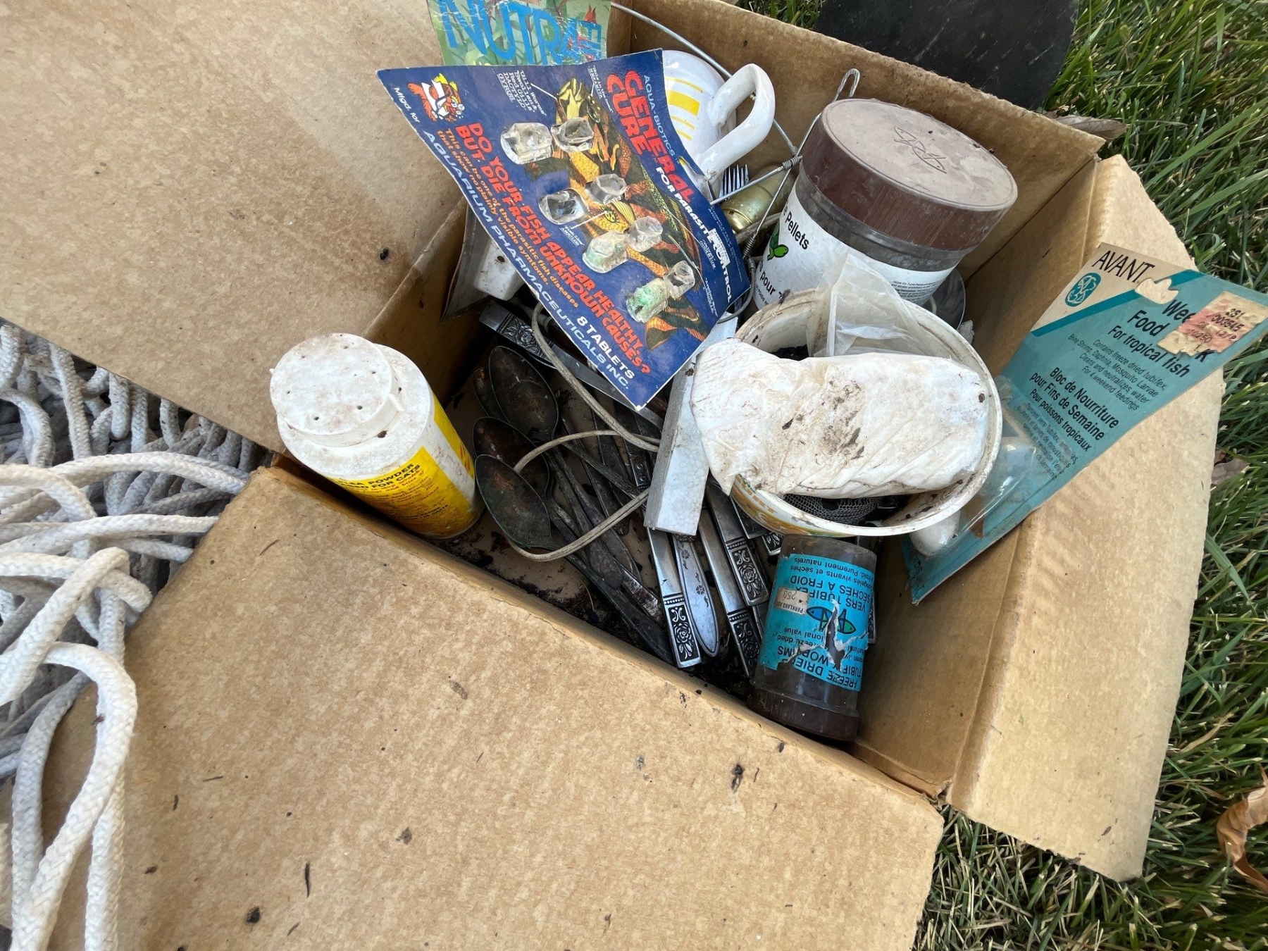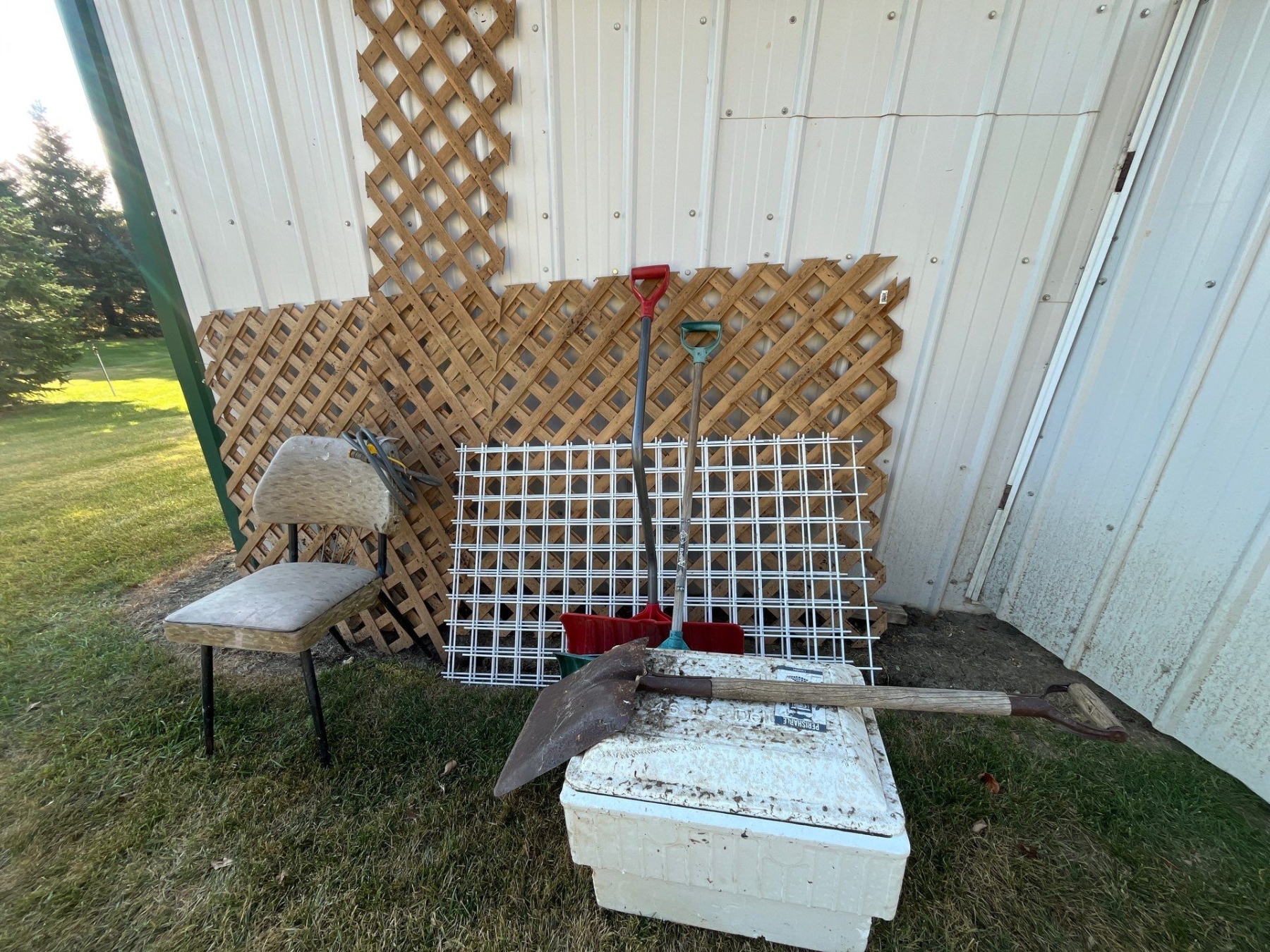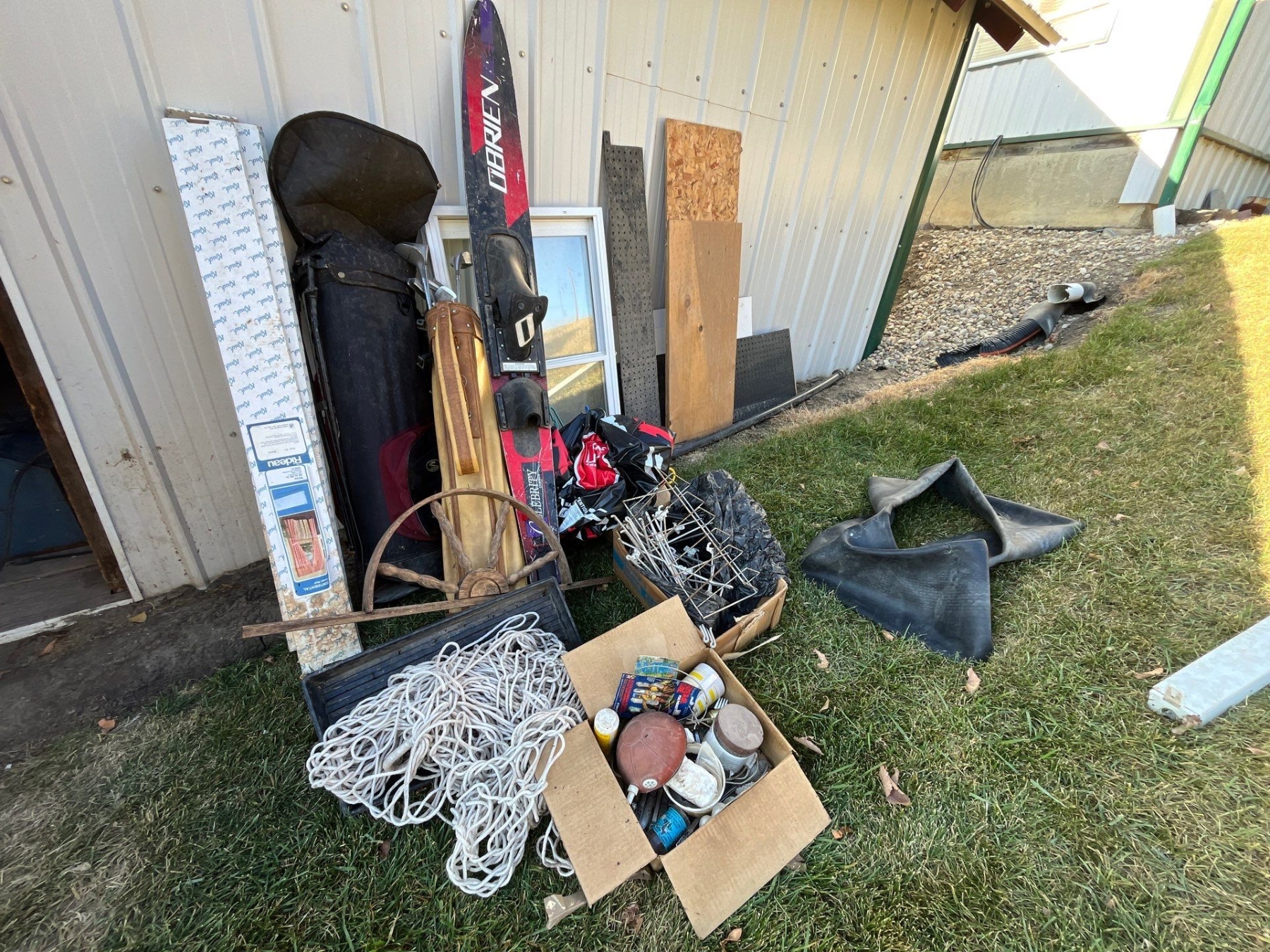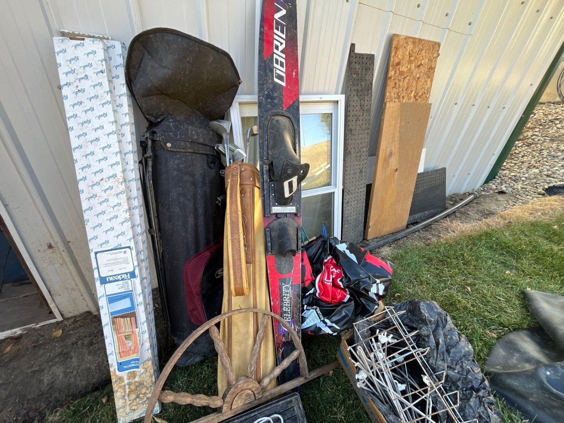 vintage water, skis, golf, clubs, and number of other miscellaneous items. Sorry I must take all including shovels, lattice, and wire hanging rack